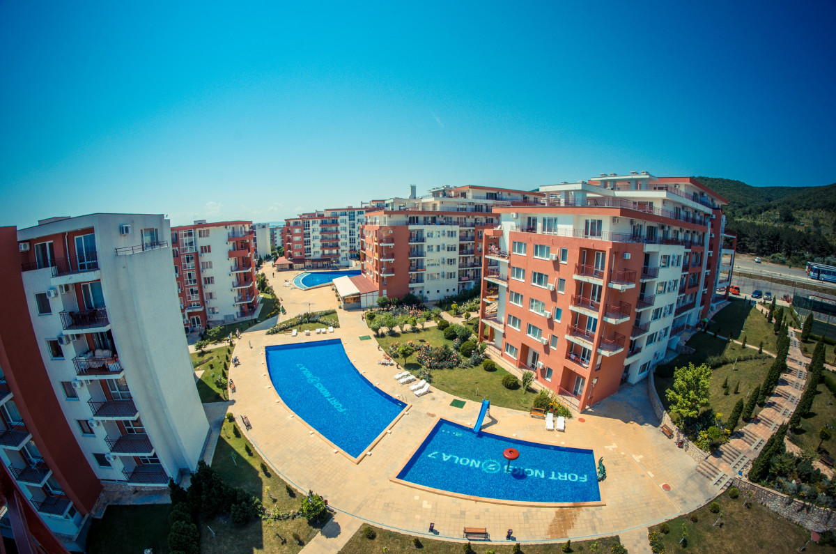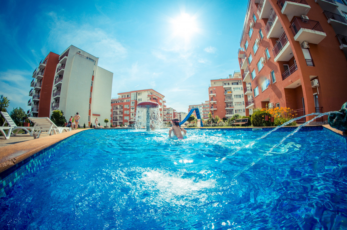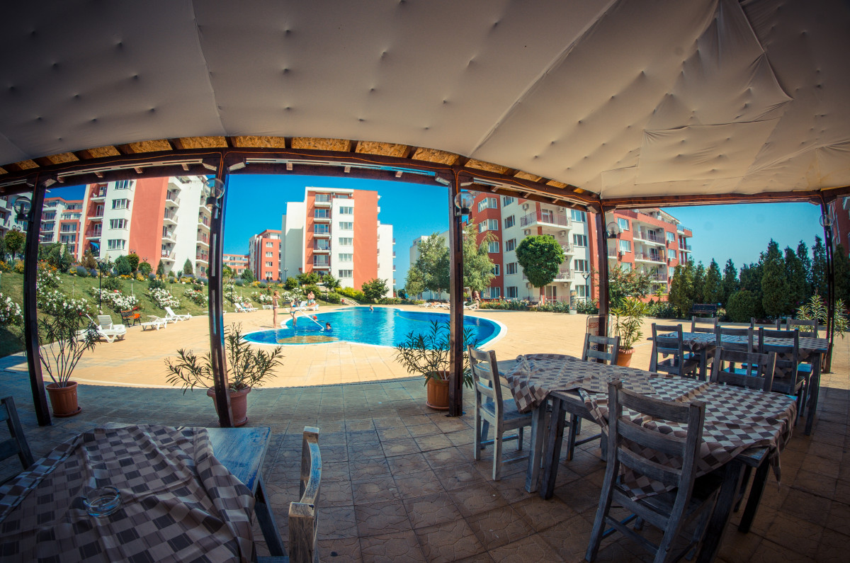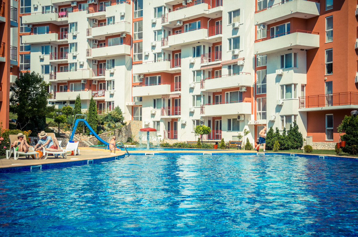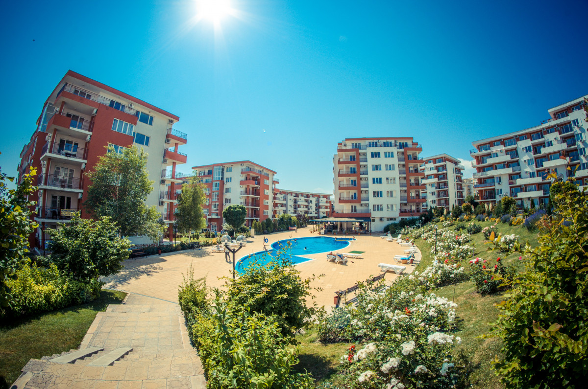 В Апарт-отеле 7 корпусов, 5-6-ти этажные здания