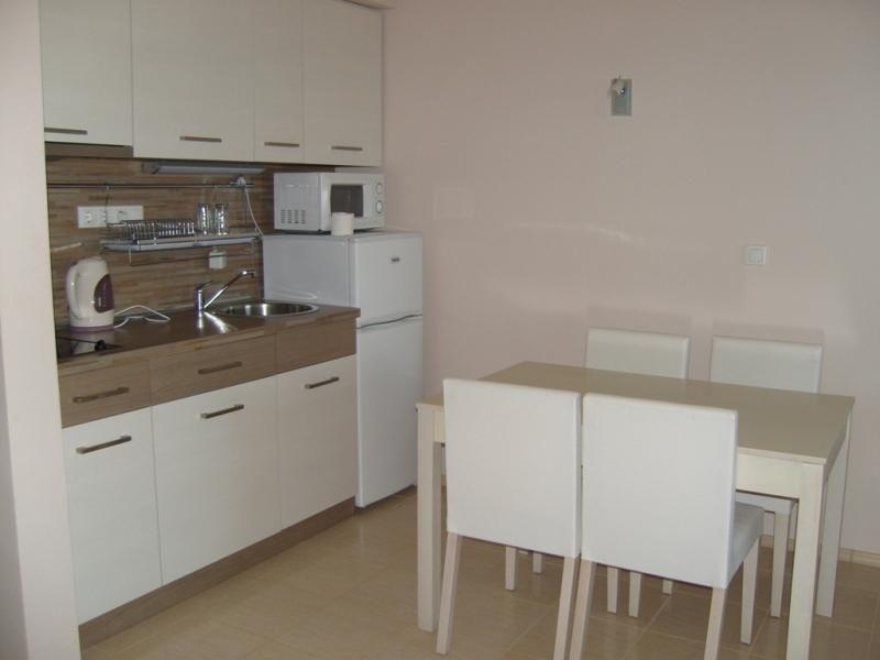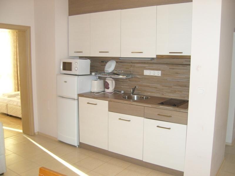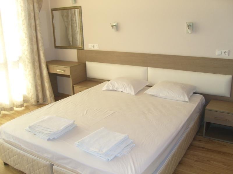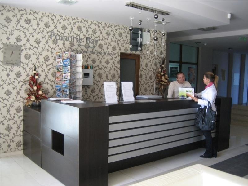 Отдыхали в сентябре 2016 г. Считается, что сезон закончился, поэтому некоторые ресторанчики сворачивают свою деятельность, магазины перестают работать по режиму, могут откр./закр. позже/раньше. Об отеле. Номер 410, 4 этаж, боковой вид на море. Отличные апартаменты: санузел (душ, унитаз, раковина, мыло, шампунь гель для душа, розетки нет, швабра с ведром, совок для мусора, ГВС и ХВС всегда, потому что стоит нагреватель); кухня (стиральная машина, двухкомфорочная плита, холодильник, микроволновка, эл.чайник, сушилка для посуды, посуда - тарелки, сковорода, кастрюли, турка, стаканы высокие и для виски, фужеры для вина, столовые приборы, разделочная доска); комната (столовая группа, очень комфортный диван, двуспальная кровать); балкон (столик и 2 стула). На ресепшен сразу дают карту для прохода по отелю, потому что местами магнитные замки, ключ от номера, пароль от W-iFi (бесплатно, скорость отличная). В номере кабельное TV,сразу не разобрались с пультами, на следующий день утром спустились на ресепшен, попросили помощь, сразу же пришел человек, все включил, объяснил - он постоянно там тусуется днем, всегда поможет. Администратор днем всегда один и тот же, вечерами меняются. Всегда готовы помочь. Дружелюбны. Впрочем, все болгары показались дружелюбными, отзывчивыми, молодежь (18-20 лет) русского языка не знает, а вот кто постарше - владеют в объемах школьной программы, понять друг друга можно :-) Пол везде - плитка. Шторы плотные. Есть гладильная доска, утюг, фен, кондиционер. За все время отдыха полотенца поменяли 2 раза, постельное белье не меняли. Мы были готовы к отсутствию полотенец (взяли с собой 2 больших и 2 поменьше), поэтому не страдали. Удивляюсь, что в отзывах пишут, что плохая уборка и белье не меняют каждые 3 дня. А дома Вы, уважаемые, белье постельное меняете ежедневно? Или на отдыхе Вы не моетесь перед тем, как лечь в постель? :-) В конце концов апартаменты - это съемная квартира, в которой, кстати, есть все, что и в квартире среднестатистического человека. А купить стиральный порошок за 0,90 лев и моющее средство для посуды за 1 лев - не огромные затраты на 12 дней. Почитали другие комментарии, изумились: вынести за собой мусор - не проблема, баки в 15 метрах от отеля, по дороге к пляжу. Если не выносили сами - персонал трудился. Впечатление такое, что некоторые случайно попадают в 3* отели. Обычно они отдыхают в 6* в ОАЭ, в 5* Карибского бассейна или Мальдив. В Поморие есть 5*, на въезде в город, напротив аквапарк. Езжайте туда! А если бюджет позволяет только 3*, то имейте уважение и к людям, и к стране, в которой Вы - гости! Настраивайтесь на позитив и будет Вам счастье! :-) Отель расположен очень удобно - пляжи и поморийское озеро (грязи) очень близко. А вот если бы отель был в районе променада и набережной, то ресторанов было бы очень много, а до пляжа пришлось бы идти минут 20. Рядом с отелем кондитерская (кофе, пирожное, тортики). Супермаркет за углом направо. Булочная со свежей выпечкой квартал налево. Когда выбирали отель, просмотрели многие. Потом, будучи в Поморие, все их обошли - смотрели расположение и пр. Так вот, по нашему мнению, POMORIE BAY - оптимальный вариант для проживания за скромные для тура в Болгарию деньги, нисколько не пожалели о своем выборе. Завтракали в номере: купили кофе, сахар, сливки - в Болгарии они называются СМЕТАНКА :-), выпечка каждое утро свежая в лавках поблизост