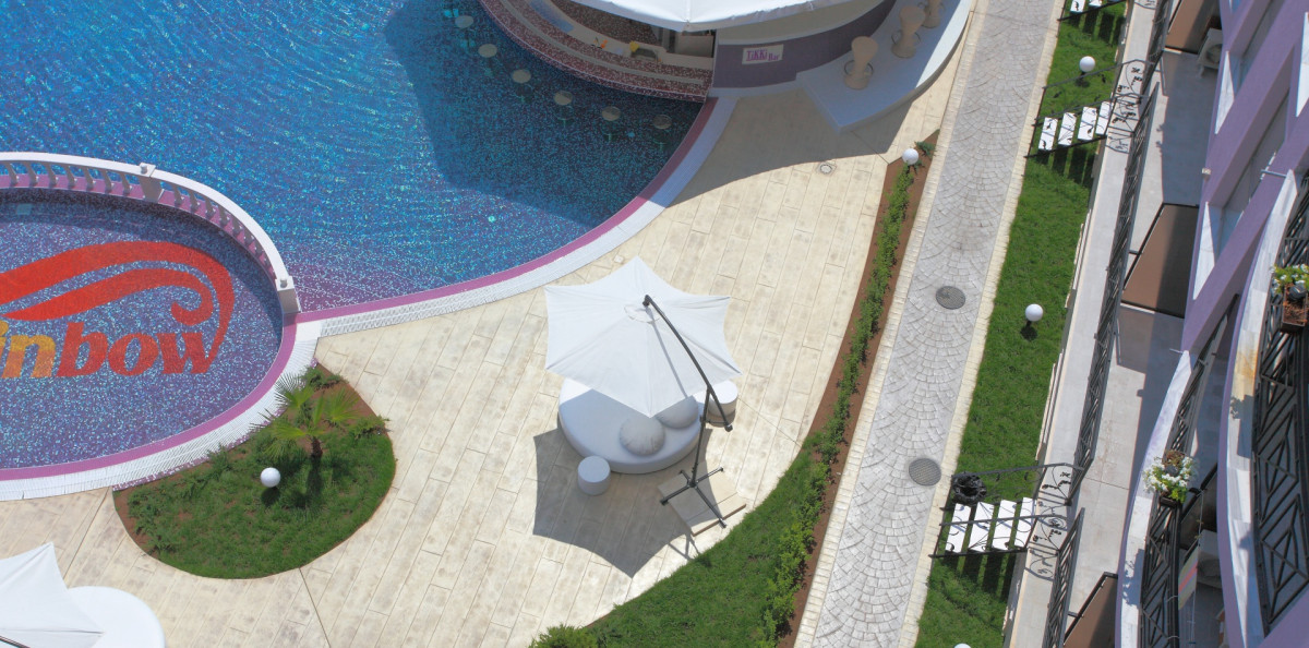В корпусе Rainbow 2 возможно размещение в DBL Standart с кухонным уголком. В корпусе Rainbow 1 -апартаменты. В корпусе Rainbow 3 - есть студии (большое помещение, разделенное на зоны).
