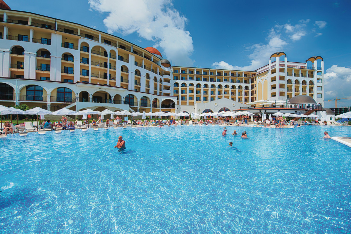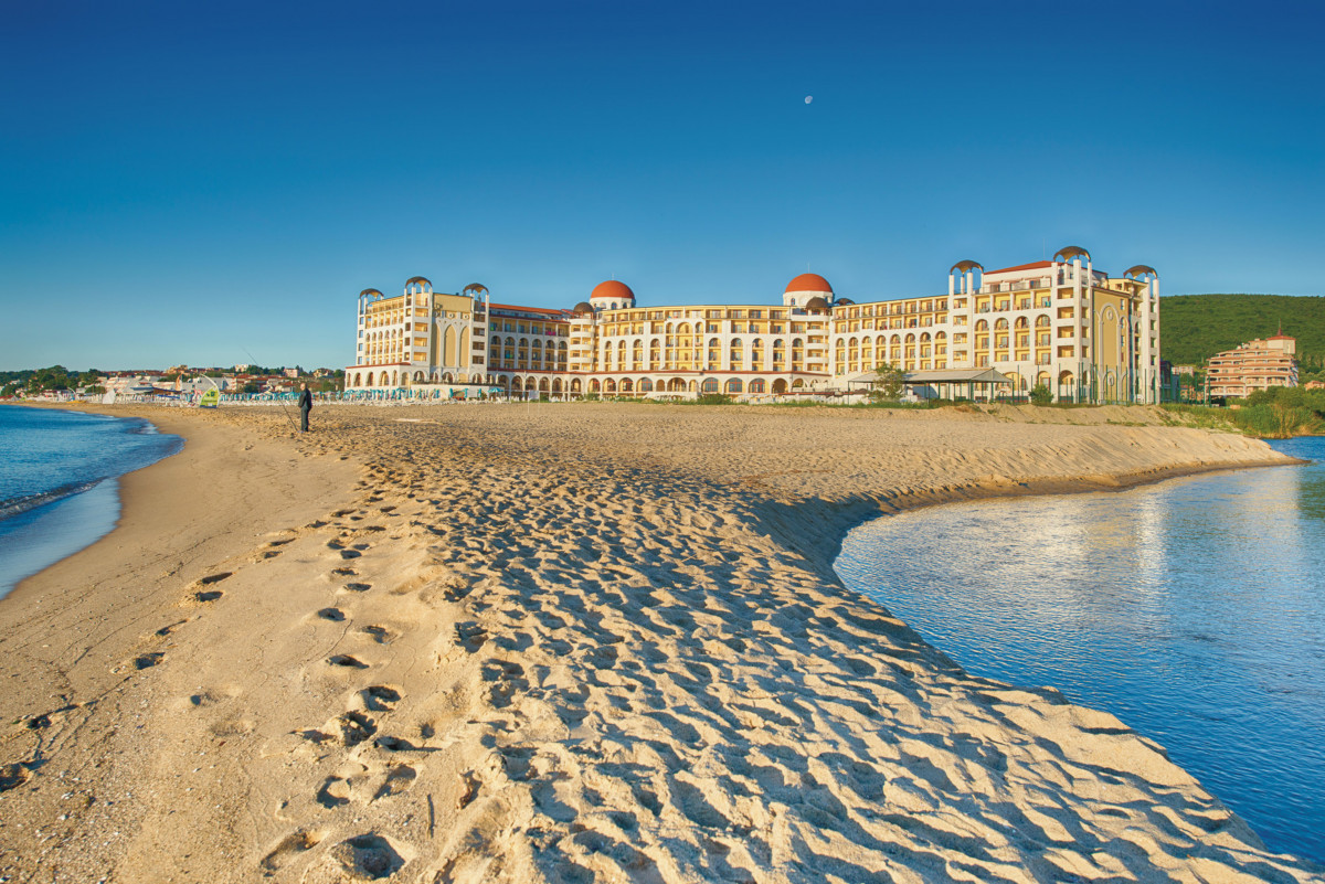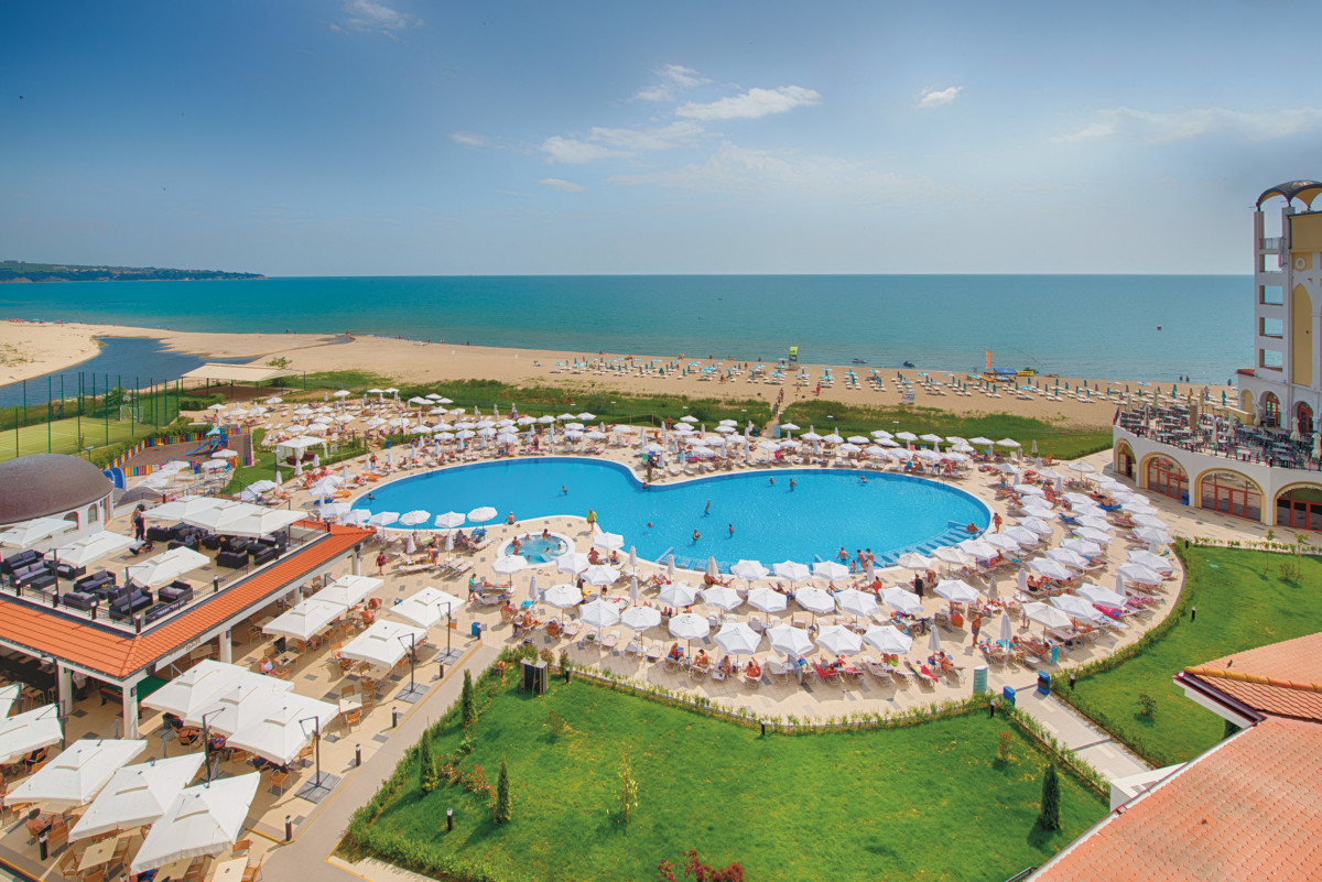 В курортном городе Обзор, в 60 км от аэропортов городов Варна и Бургас, в 500 м от центра курорта, в 50 м до торгового центра, на самом берегу моря.