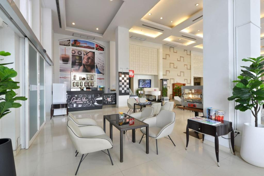 Огромный плюс отеля что номера все видом на море: каждое утро глазами видишь рассвет, каждый вечер провожаешь на балконе закат. Жили в номере superio sea view на 14 этаже. А друзья купили номер на 5000дороже delux sea view(это номера выше 25 этажа). Квадратура и расположение номера абсолютно идентичные, но ремонт в номерах Delux свежий, современны, а в номерах superio старый. Рекомендую доплатить. В целом отель для непритязательных отдыхающих. В номерах убирались каждый день. Постель очень чистая , белый стройп Сатин в полосочку. Но сам номер Sperio старый, обшарпанный и требует ремонта( оббитые углы дверей, тумбочки поцарапанные, дверь холодильника с вмятинами, потолок в ванне от свырости с пятнами). Коридоры в лифтовых холлах выглядят очень печально: плитка на полу битая, обои на стенах отваливаются. Бассейны на крыше очень даже неплохие с красивым видом , цветами, но очень мало лежаков -на всех желающих их не хватает. Завтраки однообразные выбор маленький: яичница омлет сосиски ветчина , из фруктов ананас и арбуз , слоеный булочки, рис один вид мяса. Чай и кофе абсолютно безвкусные. Но голодными не оставались. Сам вид столовой похож на школьную столовую - белые грязные стены, дешёвые столы дешёвые алюминиевые вилки. Шум стоит как в огромной школьной столовой. Тут же собирают грязную посуду в страшные металические тележки , от чего гул стоит еще сильнее. Потом мы приноровились и стали садиться по правую руку от ресепшена столовой, там более приятная атмосфера, больше похоже на кафе с музыкой. Очень понравилось кафе на входе в отель, по вечерам с живой музыкой, даже русские песни пели. Напротив отеля море и побережье желтоватого цвета но вода прозрачная рыбки плавают купаться можно. Но лучше всего ездить на пляж военный или пляж танцующий девушки ,там лазурное море. Для любителей бегать вдоль побережья есть тротуар