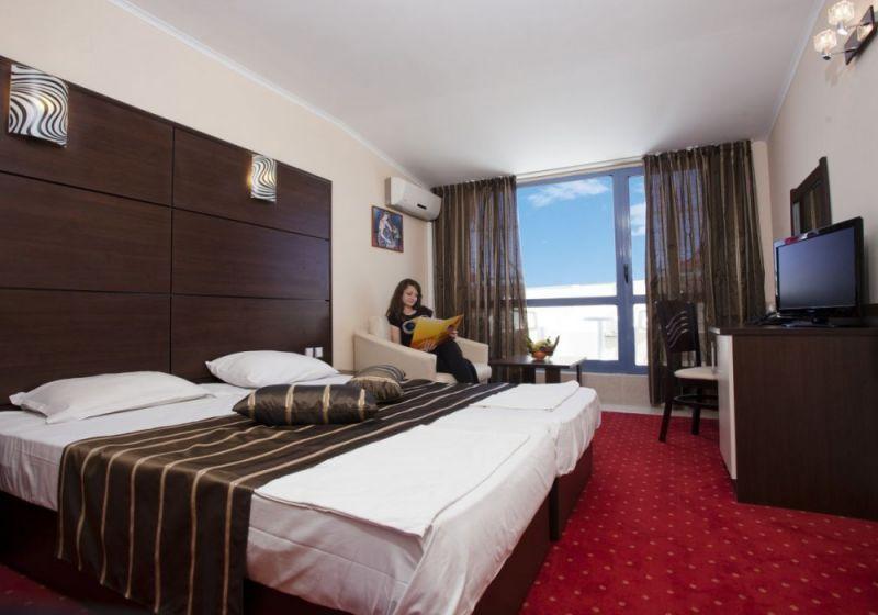 Отель условно 4 звезды, но в целом нам понравилось если не придираться слишком сильно! До пляжа 300 метров примерно, на пляже все платное, на двоих лежаки, шезлонг и матрасы обойдутся на один день примерно 40 лев - это 20 евро, а это очень дорого!!! Второй раз бы скорее всего не приехали. А так отдыхать можно)