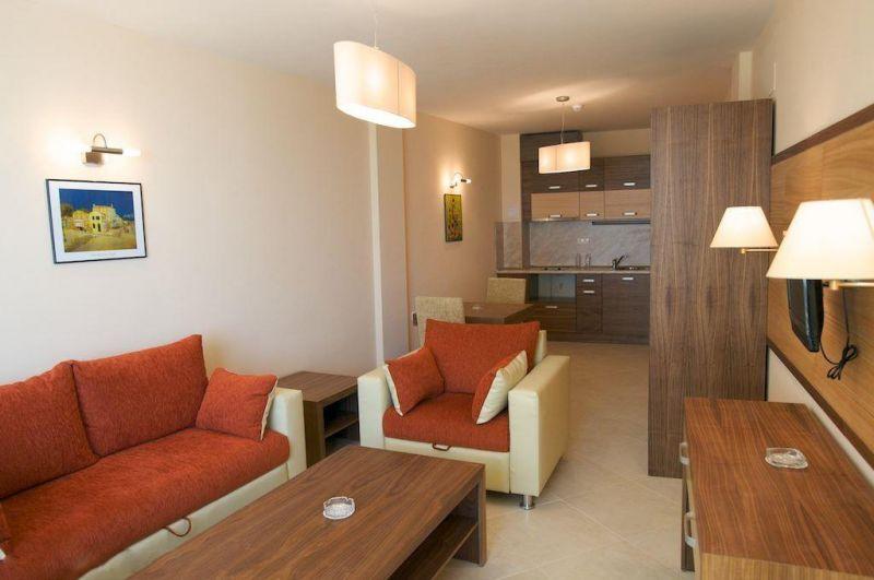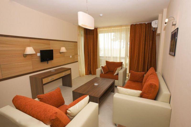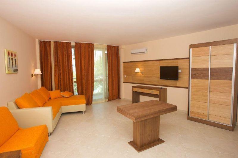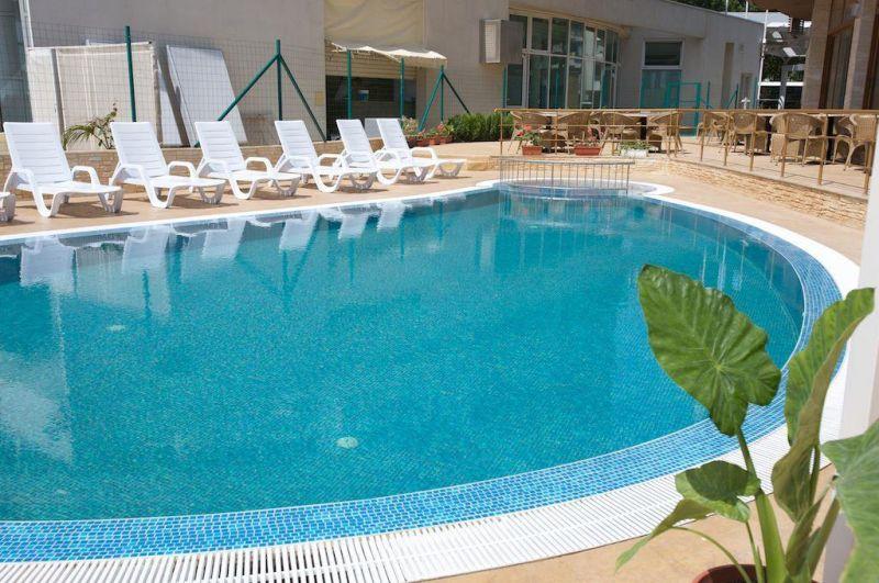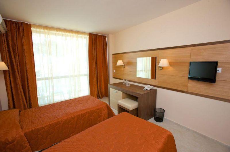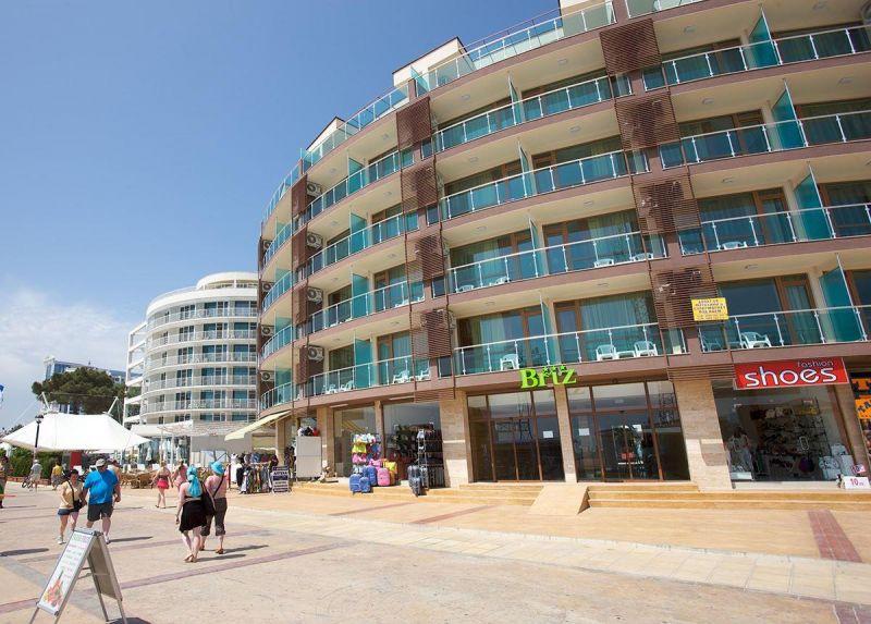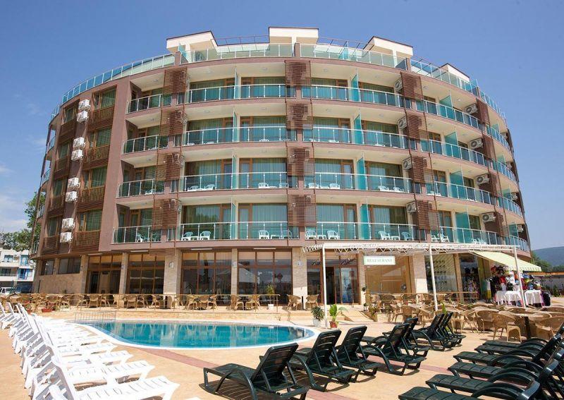 в курортном комплексе Солнечный берег, в 35 км от аэропорта города Бургас и в 500 м от центра курорта, в 10 м от пляжа.