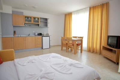 35 км от аэропорта г. Бургас, на курорте Солнечный Берег, расстояние до центра курорта 1,5 км