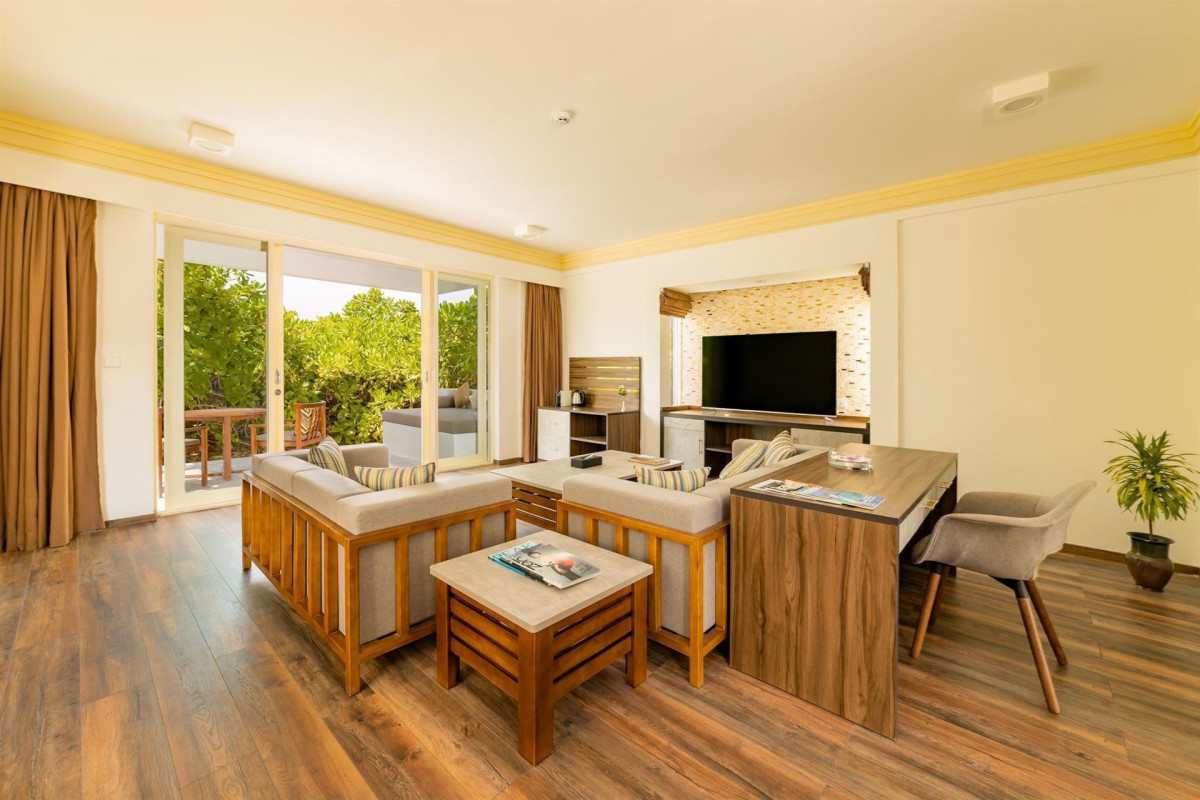 Отель потрясающий!!!! Просто сказка!!! Специально выбирали отель подальше от Мале, чтобы почувствовать действительно атмосферу полного уединения с природой и обязательно хотели чтобы был гидросамолет, встретили нас с бубнами, с нами работала девушка Анна, помогала по всем вопросам, остров очень большой, 8 ресторанов 6 баров все включено, очень понравилось что входила экскурсия бесплатно на закате, давали бесплатно маски с трубками для снорклинга, и каяки тоже, очень понравился бар «Кораблекрушение» там подают вкусную пиццу и коктейли, также крутой ресторан «Вместе» там после 16:00 если не успевали покушать в обед предлагали сэндвичи, закуски, а вечером проходили различные мероприятия: саксофон, скрипач, музыканты играли живую музыку и проходило фаер шоу, у нас был потрясающий номер водная вилла с видом на рассвет, очень много рыб увидели, муж был два раза на дайвинге, видел большого ската, черепаху. В день рождения поздравили в номере, принесли торт и шампанское, вечером ходили в испанский ресторан, ели паэлью с морепродуктами, ну оочень вкусная. В ресторане Waho жарят вкусные стейки. Это самый лучший отель, в котором мы были, спасибо огромное всему персоналу и да обязательно скачивайте приложение, где можно посмотреть расписание работы каждого ресторана и вечеринок каждый день)