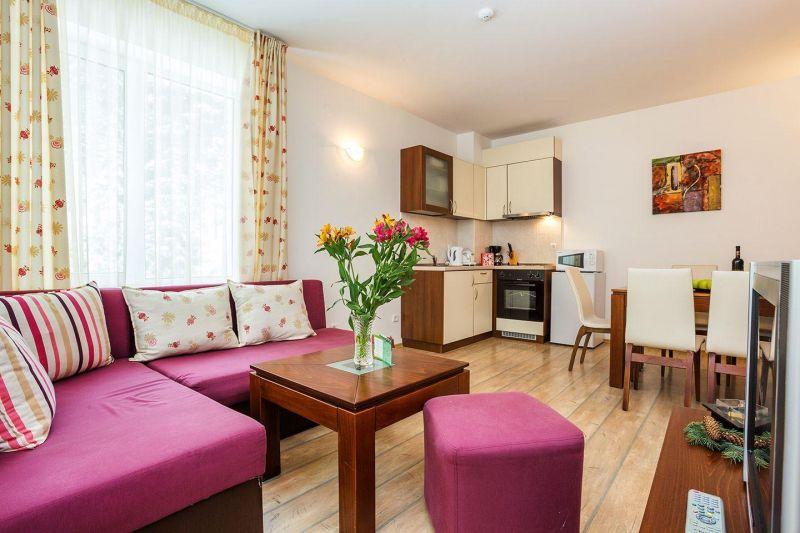 Апарт-отель расположен в тихой части курортного комплекса Пампорово среди живописного соснового бора, в 20 м от главной дороги Пампорово - Девин-Широка Лыка. Расстояние от отеля до центральной части курорта - 2000 м, а до горнолыжного подъемника Малина – 800 м. Аэропорт Пловдив находится на расстоянии 75 м от отеля.