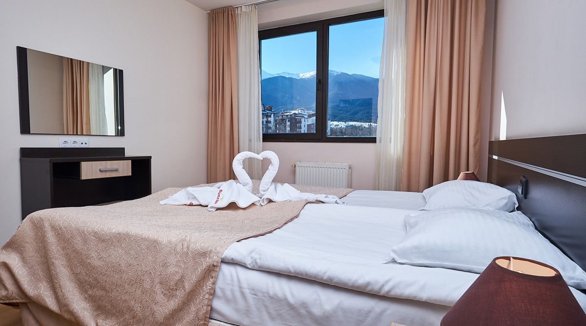 в курорте Банско, в 165 км от аэропорта города Софии и в 150 км от аэропорта города Пловдива, в 700 м от центра Банско и в 400 м от начальной станции подъемника. Есть шаттл-бас до начальной станции подъемника - бесплатно, по расписанию.
