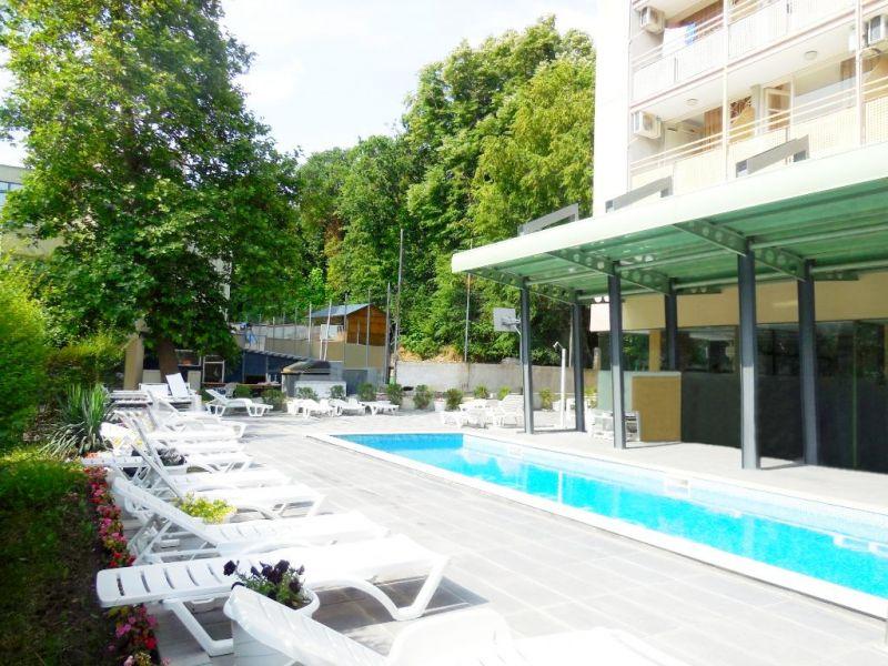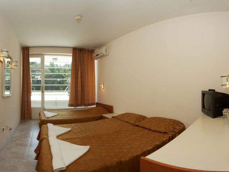 Можно много писать о том, что здесь не хватает или о том, что можно улучшить. Но прежде, чем предъявлять претензии, надо четко представлять, что вы получаете за такие деньги....Поэтому у меня претензий нет, даже больше - претензии могут быть только к самому зданию и номерам, но никак к главному персоналу отеля и к представляемыми ими услугам. В остальном все скромно, но достойно. До моря не далеко, метров 250, все пляжи платные, но можно найти и бесплатные участки. Питание, если не собираетесь уезжать, а ходить только на море и по курорту, лучше взять в отеле (ну если конечно нет желания пошиковать в местных ресторанах, правда тогда зачем выбирать этот отель?) Вообщем если вам нужно экономно получить: море, солнце, пляж, питание и сон, то вполне сойдет. Горячая вода и кондиционер в номере работаю исправно, без проблем. Мебель, кроме матрасов лучше не трогать, если на балконе нет веревки для сушки белья, то попросите привяжут. Если собираетесь затариваться фруктами и ягодами, то в Варну ходит автобус - 3 лева в одну сторону (спросите на рецепшене), Такси от 20 лев. Цены (фрукты и ягоды) на рынке для местных, минимум в два раза дешевле. Алкоголь и другие товары с длительным сроком хранения дешевле незначительно.