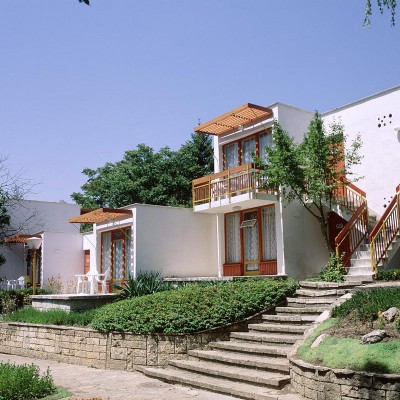 В двухэтажных корпусах-виллах 53 апартамента. К услугам гостей телефон, стоянка такси. В апартаменте две спальни, холл. Можно взять напрокат телевизор и холодильник. Бесплатный бассейн отеля "Алтея", питание в ресторане "Горизонт".