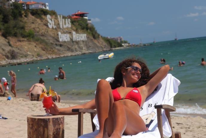 Муниципальный песчаный - в 400 м от апартотеля, через дорогу. Пляжное оборудование - платно. Пляжные полотенца не предоставляются.