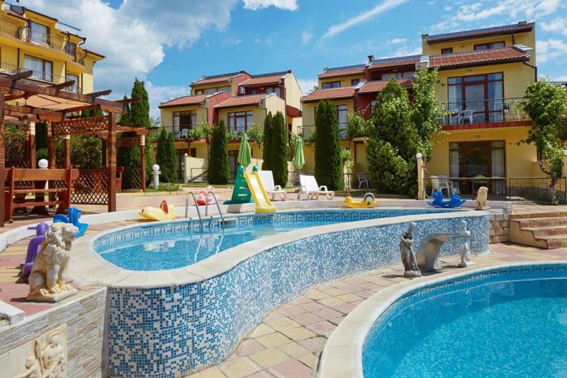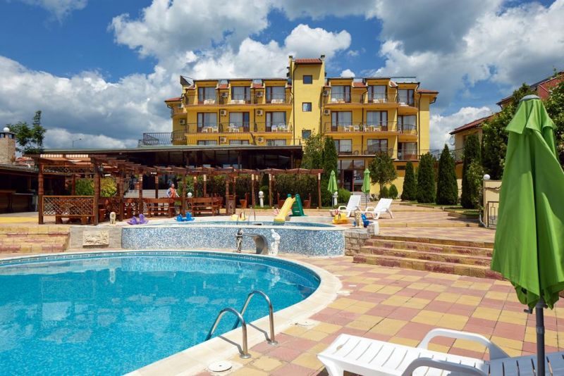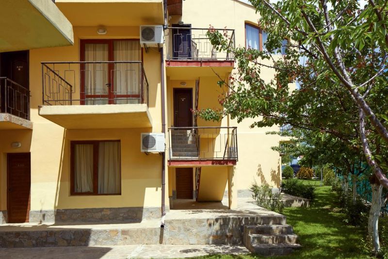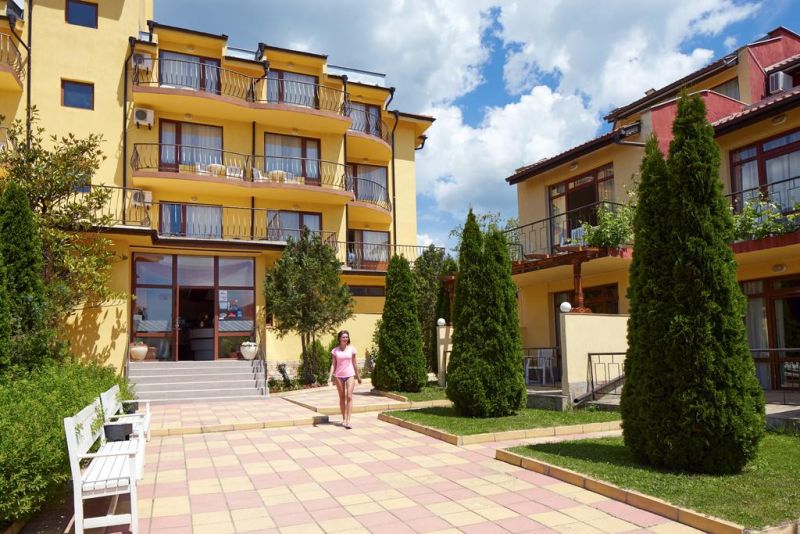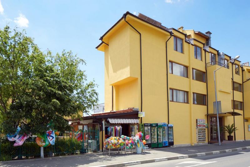 на окраине северной части курорта Солнечный Берег, по дороге к Св. Власу, в 32км от аэропорта города Бургас, в 250 м от моря.