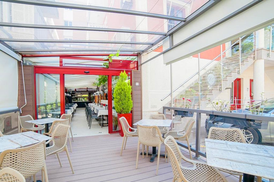 Четырехэтажный дом с сосновым двором, в районе правительственной виллы Горица, всего 24 номера.