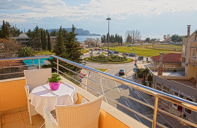 Отель находится в хорошем районе Будвы, 100м от пляжа. Напротив отеля Парк у въезда в Будву со стороны Бечичи. Рядом находятся супермаркет, прокат автомобилей, магазины. Отель без собственной территории и авто стоянки. Очень хорошо оборудована, высокая категория, новая мебель. Хорошее месторасположение, до старого города 30 мин. пешком.