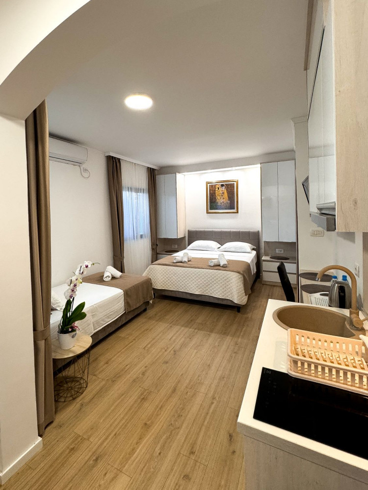 Apartment 3 Pax — 25 кв. м, двуспальная и односпальная кровать, мини-кухня, балкон. Число гостей — до 3 человек