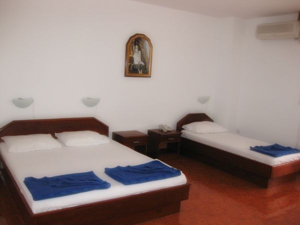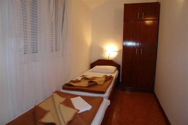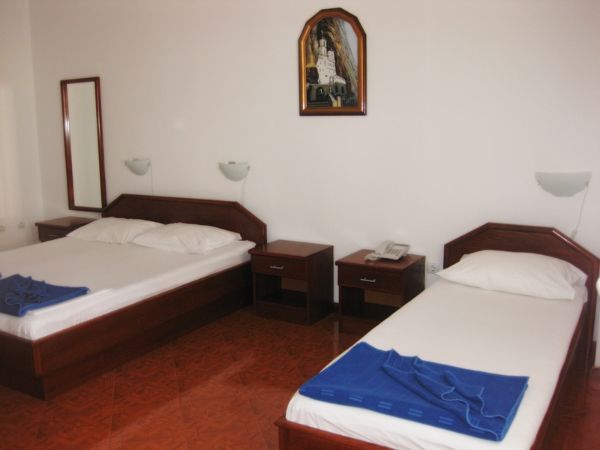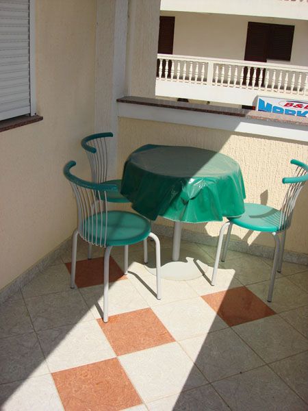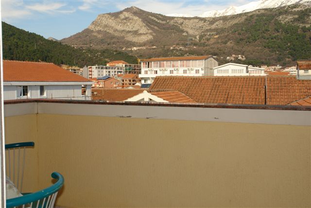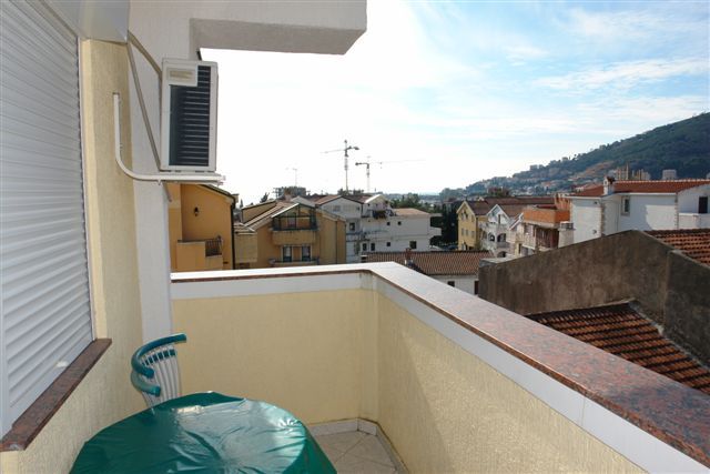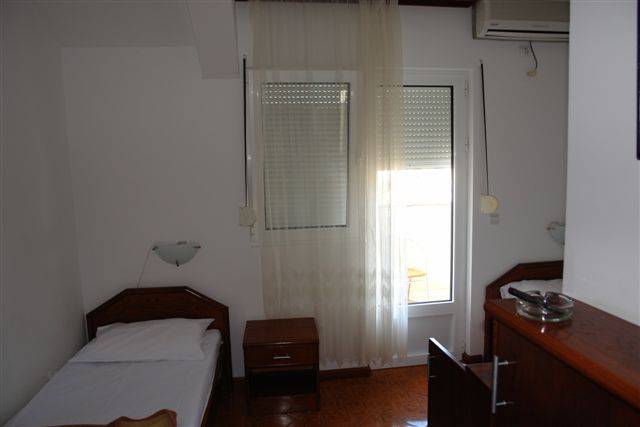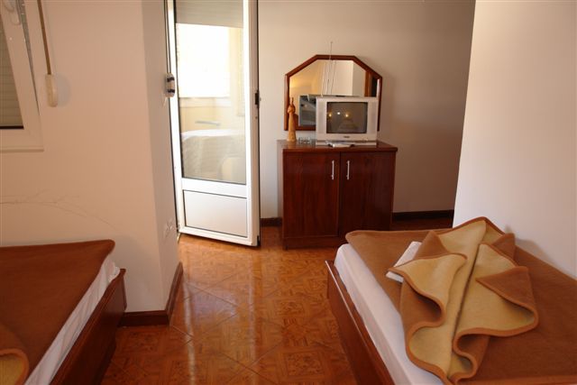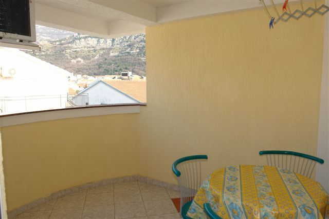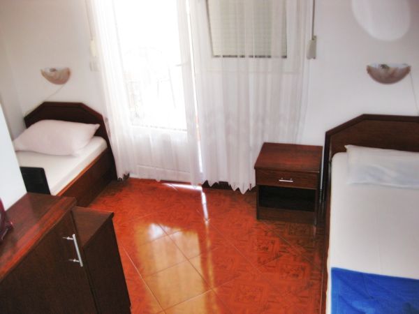 APP 03+1: около 33м2 + полукруглая терраса около 5м2 с видом на гору и соседние дома. 2 комнаты: первая - французская кровать (только здесь кондиционер, ТВ и выход на террасу), вторая -2 отдельные кровати. Размещение мин. 3 человека или 2 взрослых + 2 детей.