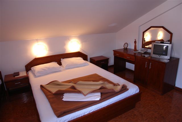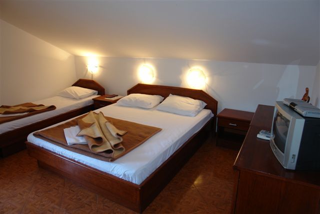 № 500 APP 03+1 (penthouse): на последнем этаже, площадь около 27м2 + терраса около 4м2, совместная с №501, с видом на соседние дома. Вход в коридор, прямо вход в одну комнату с двумя отдельными кроватями; налево вторая комната с французской и отдельной кроватями (здесь находится кондиционер, ТВ, также из этой комнаты выход на террасу). Скошенные потолки. Размещение мин. 3 человека.