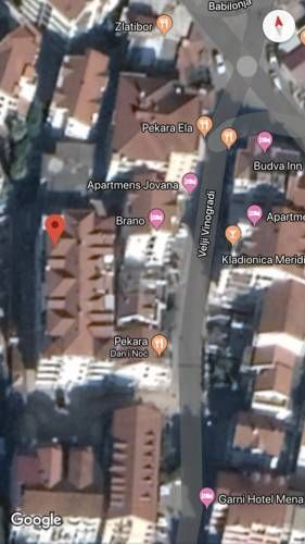 Апартаменты находятся в спокойном и тихом месте Будвы, в окружении зелени, в 400 м от моря, через дорогу.