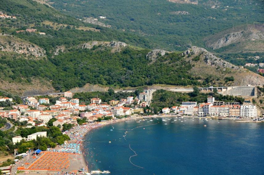 муниципальный песчано-галечный примерно в 50 метрах от здания апартаментов, через дорогу
