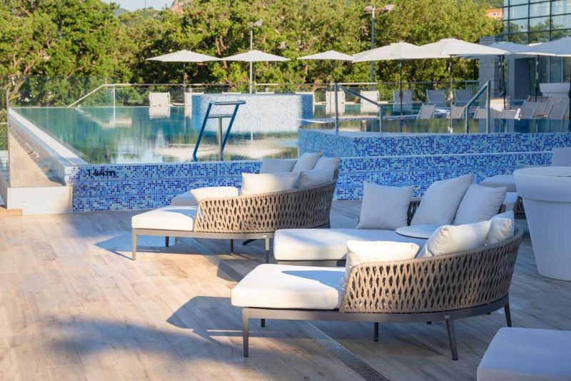 Отель сам по себе не плохой, но сервис на 2. Халата и тапочек нет в номере, косметических принадлежностей тоже нет. Уборка в номере по запросу. Питание ВВ нормальное. Пляж вместе с муниципальным, даже не отгорожен. Вид из отеля уже совсем другой, моря почти не видно из-за застройки. Бассейн и джакузи на 5.