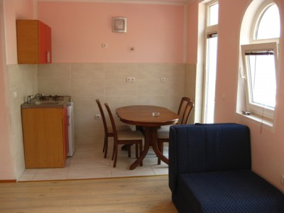 Studio 4 номера (22-25 м2) с видом на море и горы, два из них оборудованы мини-кухней, два других с кухней на этаже. Максимально допустимое размещение – 2+1 человек.