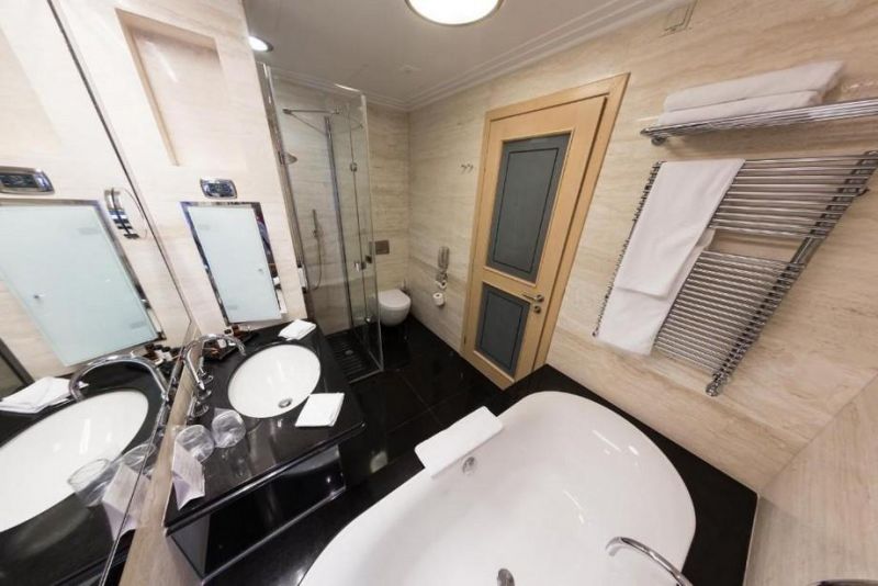 1 Presidential Suite (около 385 кв.м; президентский люкс с видом на море, оформленный известным итальянским дизайнером: 3 спальни, гостиная, кухня; есть джакузи и частный бассейн; макс. 6 чел.)