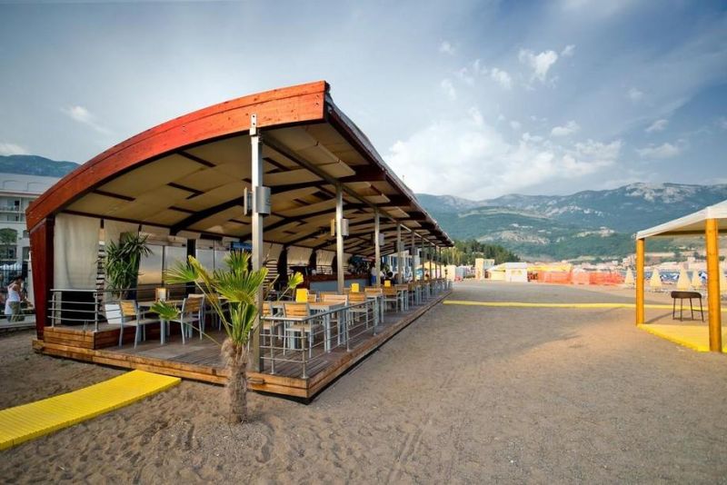 Собственный участок на песчано-галечном пляже - в 50 м от отеля, через променад. Зонты, шезлонги и пляжные полотенца – бесплатно.