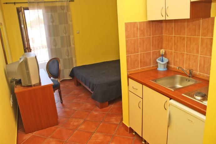 Studio 02 (около 25 кв.м, однокомнатный номер с французской роватью и мини-кухней; макс. 2 чел.)