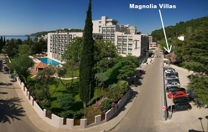 Находится возле отеля Sentido Tara Hotel, всеми услугами которого гости Magnolia Villas могут пользоваться. Находится в курортном поселке Бечичи, в непосредственной близости от песчано-мелкогалечного пляжа и в 3 км от Старого города Будвы. До аэропорта г. Тиват 24 км, до аэропорта г. Подгорица 62 км, до аэропорта г. Дубровник 71 км.