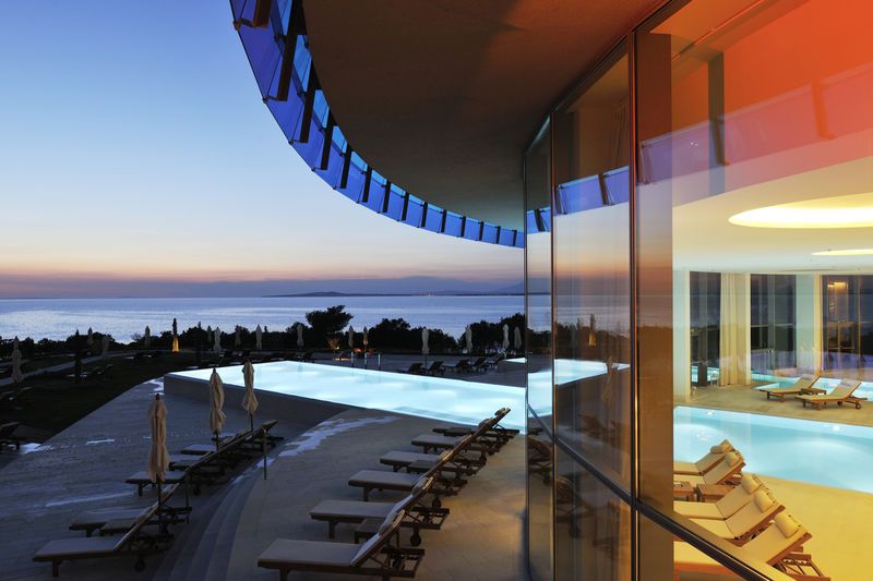 Открытие отеля состоялось в 2011 году. Эксклюзивный отель класса «делюкс» расположен недалеко от местечка Петрчане на полуострове Пунта Скала и входит в одноименный туристический комплекс Falkensteiner Hotels & Residences Punta Skala, в котором Iadera позиционируется, как первоклассный Спа-отель. В здании отеля 3 этажа. До Старого города Задара – около 16 км на юго-восток. 25 км от аэропорта г.Задар, 144 км от аэропорта г.Сплит. С 2018 г. отель работает круглогодично.