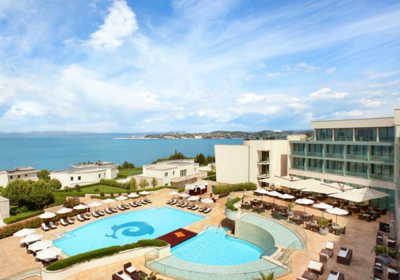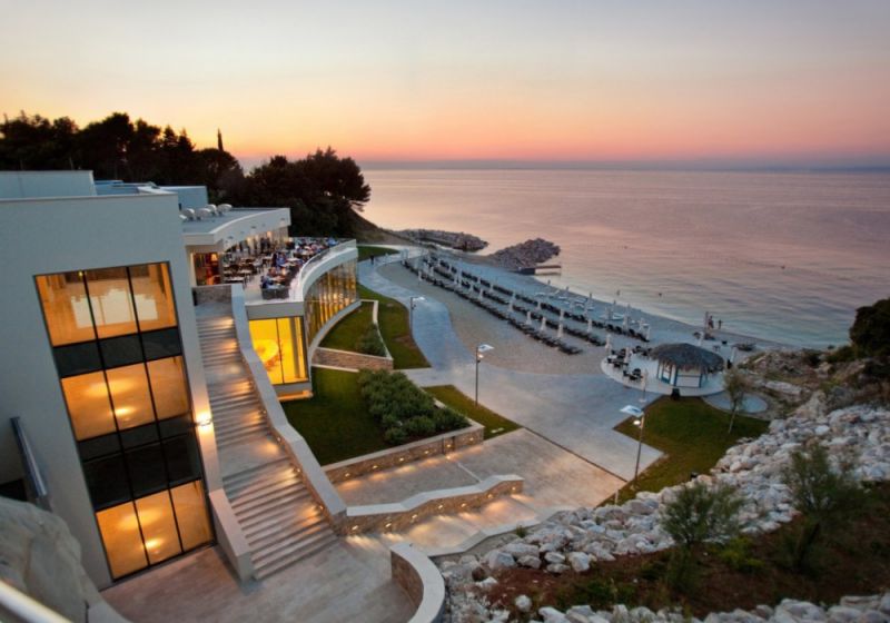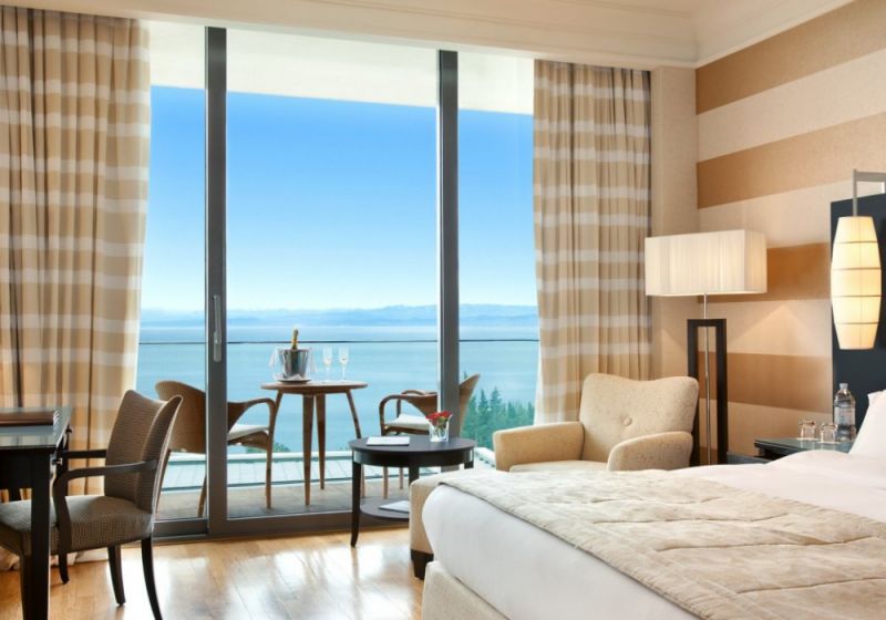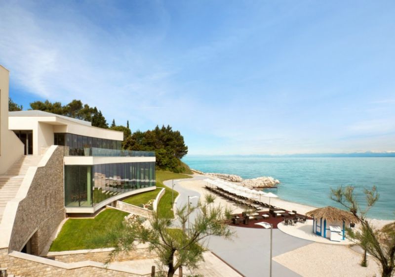 1 номер Presidential Suite Jure Grando (263 кв. м + 548 кв. м балкон, номер в черных тонах на последнем этаже, спальня, просторная гостиная с камином, столовая и кухонная зоны, джакузи на террасе, вид на море)