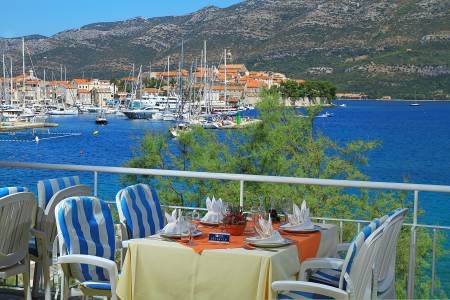 Отель находится на берегу моря, в нескольких минутах ходьбы от центра города Корчула. Состоит из двух павильонов, соединенных с центральным зданием, и двух павильонов поблизости. Предлагает размещение в номерах 2* и 3* (номера 3* были недавно обновлены).