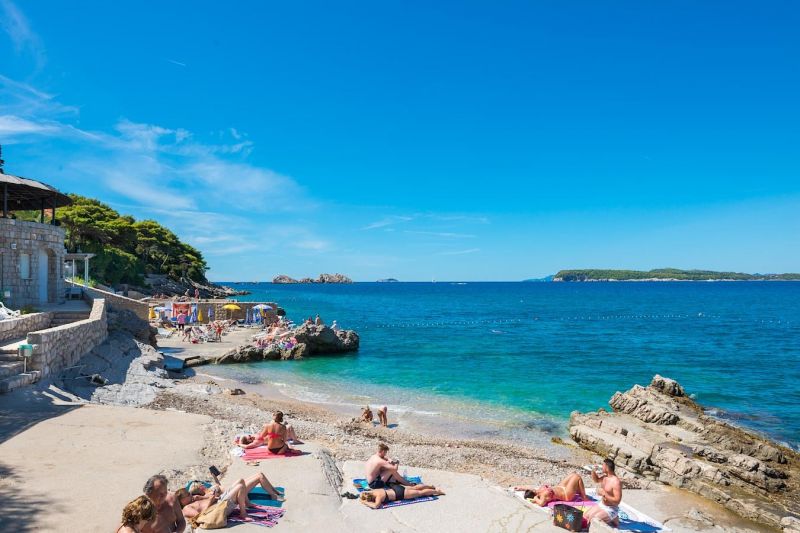 В живописной бухте полуострова Лапад. Рядом с пляжем. Всего в 10 минутах ходьбы до курортного променада. В 4 км от исторического центра Дубровника. В 20 км от аэропорта Дубровника. Рядом с остановкой автобуса.