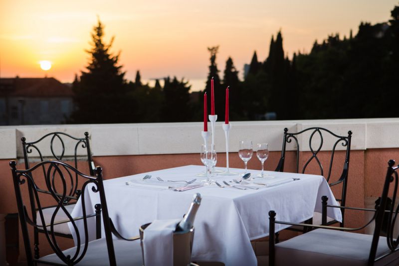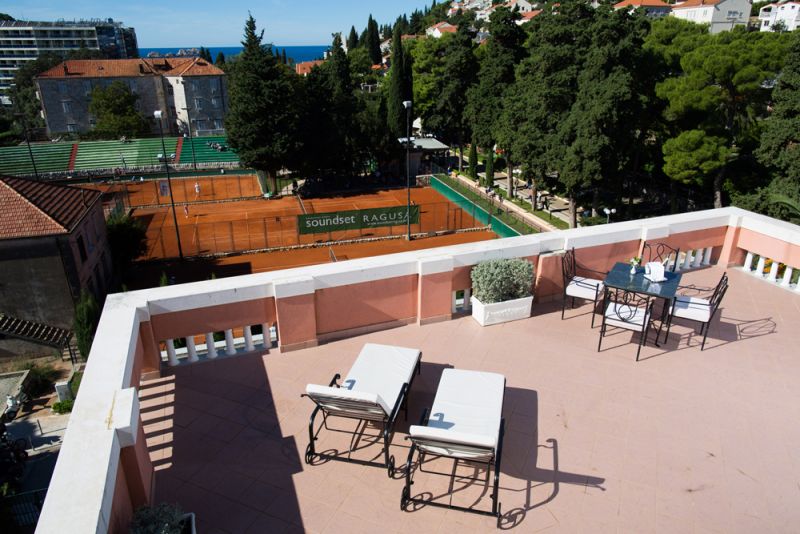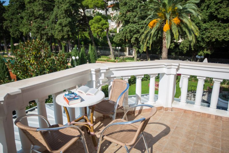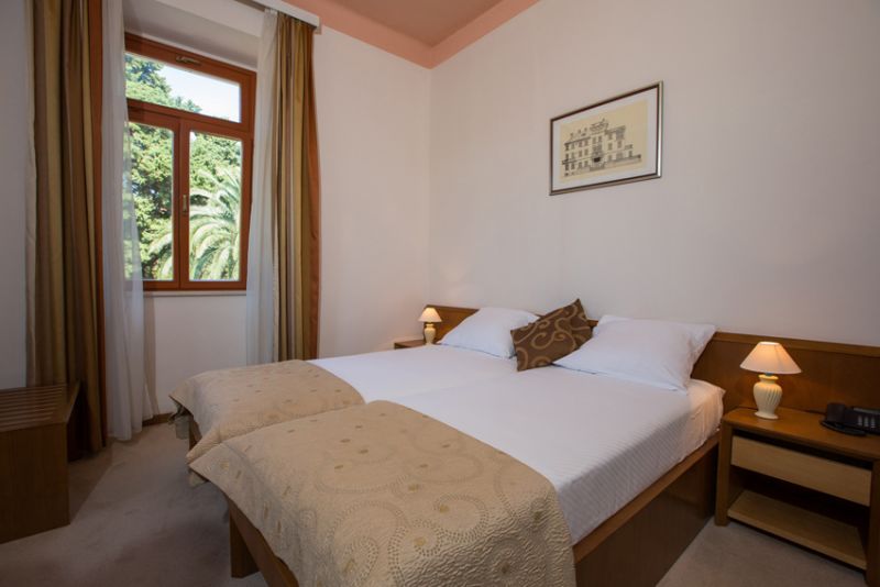 Отель, открытый в 1932 году, находится в старинном уютном особняке, окруженном великолепным садом, в местечке Лапад, в доступной близости от моря и исторического центра Дубровника, в центре пешеходной парковой аллеи, в стороне от оживленных улиц