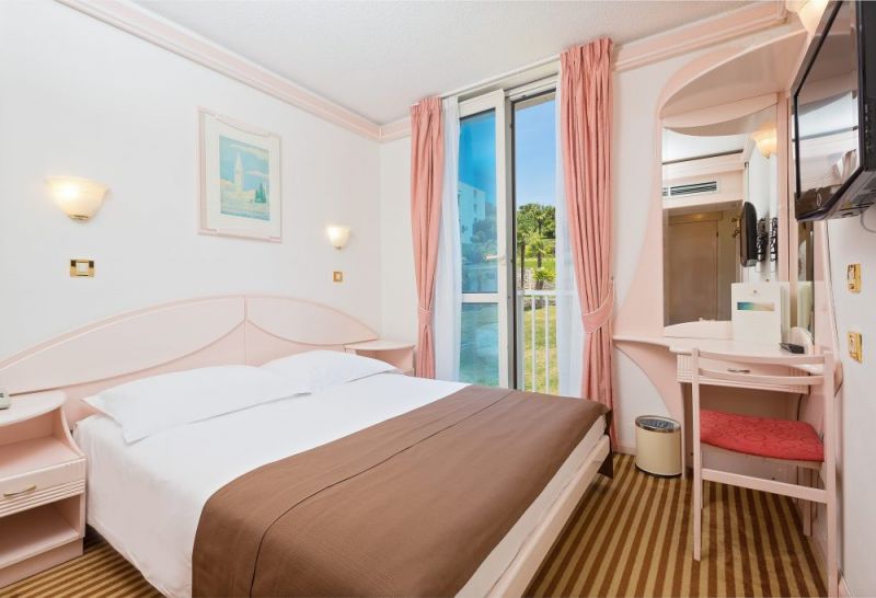 Отель относится к курорту Zelena Laguna и расположен рядом с отелем Plavi на самом берегу моря. Работает по системе «все включено». До Пореча (5 км) регулярно ходят автобус (остановка находится рядом с отелем), туристический автопоезд и катера. Отель был полностью реконструирован в 1998 году, состоит из трех-, четырех- и пяти-этажных корпусов. 60 км от аэропорта. В 2017 г. в отеле была проведена реновация интерьеров отеля.