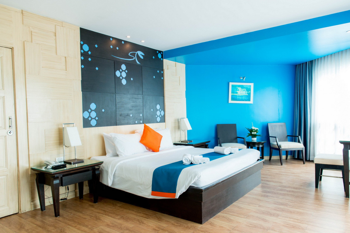 Отдыхали я, дочь с детьми(10 и 4 года) с 14 по 27 июня. Начну с того, что отель полностью оправдывает себя. Жили в корпусе в, описание соответствует,нам было удобно что окна не на бассейн,тихо. Приехали мы рано с Бангкока, и нас сразу заселили. Не знаю что сработало либо номера были готовы, либо большая Плёнка, но до 12 дня мы были в номере. Депозит 1000 бат. За 2 недели нам 3 раза меняли постельное, полотенца большие только и для ног, их каждый день меняли. Насекомых не было, ну мы еду в холодильник убирали. Протек стояк или как правильно под раковиной, обратились и нам сразу заменили на новый. На завтрак можно найти и детям что поесть, голодный точно никто не останется, нам всё понравилось. Мы любители кухни тайской. Фен брали на ресепшн, сейф не стали документы и деньги были под замком в чемодане. Персонал отзывчивый, нас всё устроило. На море был отлив, но это не сезон, ездили на военный пляж. Дети плавали часто в бассейне, их тут 2. До этого отеля, жили последние 2 года в Паттайе парке. Тем более приезжаешь и в номере только переночевать, умыться, передохнуть, всегда занят, то на экскурсии, то в аквапарке с детьми