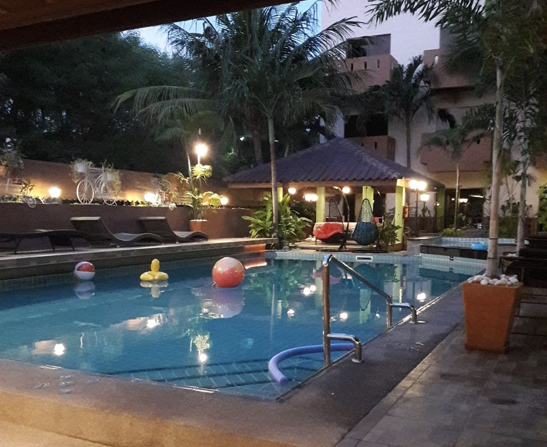 Состоит из 4-этажного здания без лифта и 12 бунгало. Всего 38 номеров