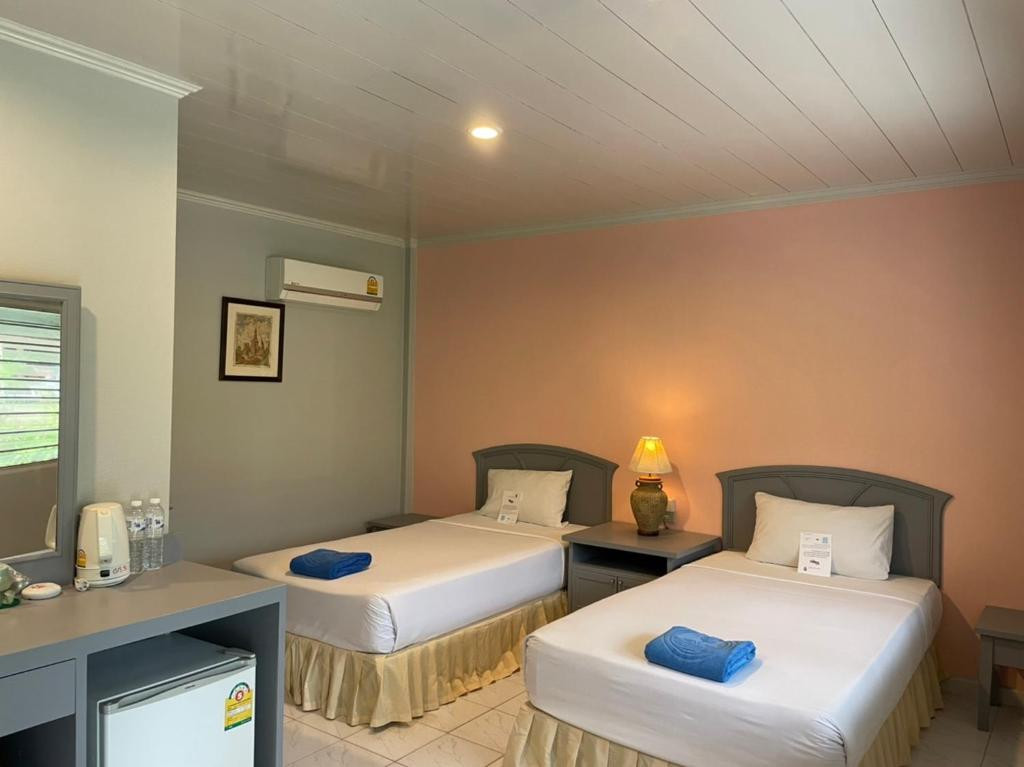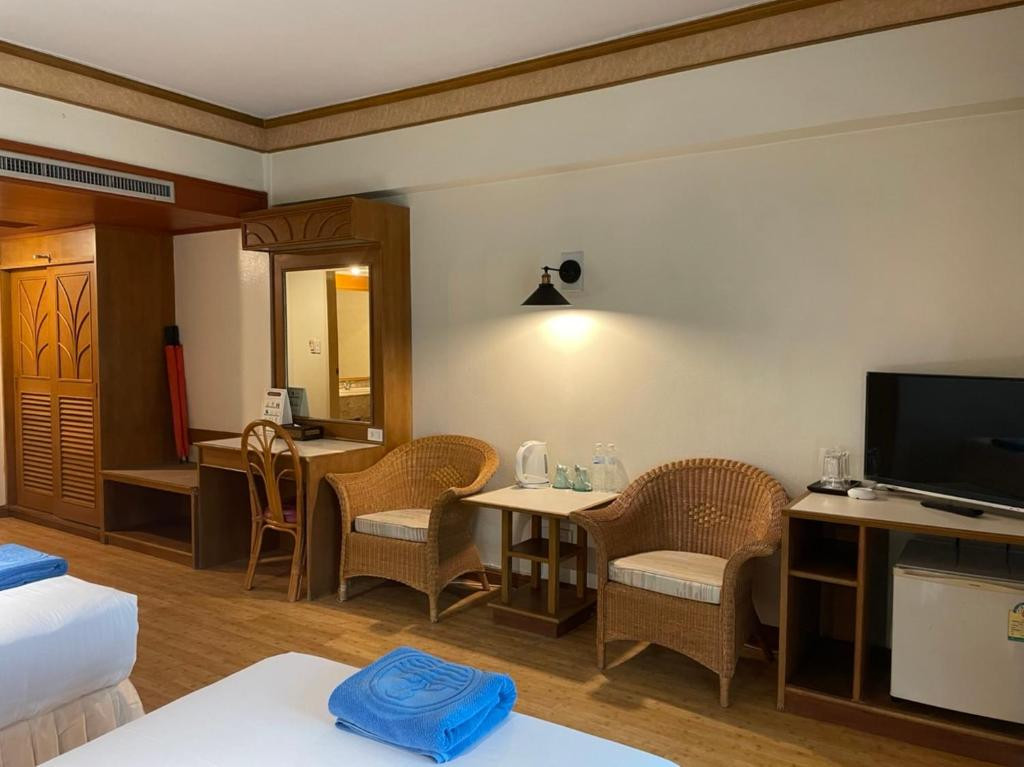 Были первые 2 недели апреля 2023! У отеля действительно очень хорошее расположение в начале пляжа корона, своя большая зелёная территория, номера соответствуют категории, да действительно номера в главном корпусе выходит на дорогу но при такой температуре воздуха и духоте вы не будете спать с открытыми окнами и дверьми поэтому это не критично, бунгало тоже вполне себе приятные уютные, постельное белье белое без дырочек и пятнашек, Мебель не новая конечно но не убитая все рабочее, главное хороший матрас!!! Завтраки однообразные это да но горячее блюдо меняется, то курица с рисом, макаронами, супчики( куриные) за неделю 1 раз даже креветки были! Кофе растворимая, берите с собой заварное, молоко в доступе, воду дают по две бутылки 0 5 л на человека каждый день, но с утра можно набрать водички на завтраке! Через дорогу 7eleven, том ямм от 120-150батт, вкуснее всего в центре карона где вещевой ранок! Рис в ананасе с морепродуктами бомба(120-150батт), рыба попугай , а вот марлин похож на тунца, лангуст(средний 5т.р.) не зашел(наш краб лучше в раз), а вот большие креветки топчик! Манго от 30(желтый) до 80(красный и xl желтый)батт. Путевка с Питера 2 недели Аэрофлотом 250т.р. 2 недели, потратили на питание (обеды, ужины, перекусы мороженое, фреши, пиво) около 60т.р. В восторге от экскурсий на Симиланы 14тр,Пхи-Пхи 30тр.(2дня)! Берите фумигатор!