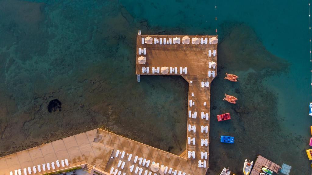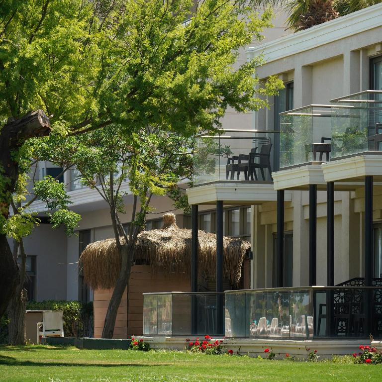 Отель находится на берегу моря, в 7 км от центра курортного местечка Дидим. Расстояние от аэропорта Бодрума — 86 км.