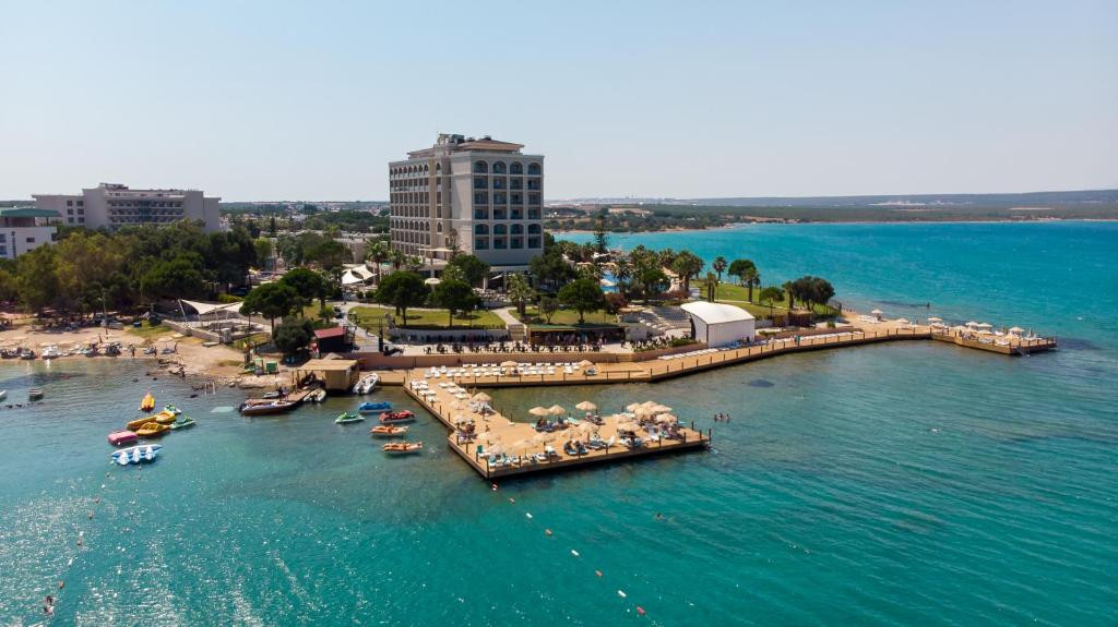 Отдыхали с дочкой-подростком в августе 2024 года, все понравилось. Заселили до 12.00 часов, номер в основном корпусе. В номерах чисто. Еда разнообразная и вкусная. Русских в отеле немного, из персонала по-русски говорила только девочка, которая записывает в рестораны а-ля карт, но каждый день в отеле находился представитель турфирмы, поэтому если есть проблемы с английским, можно обратиться к нему. Море чистейшее, полотенца можно менять хоть после каждого купания. Лежаки и на море, и у бассейна найти непросто, но можно. Мороженое во время ужина. На территории отеля есть магазинчик с основным необходимым, цены в евро. Из еды было мясо, рыба, фри, рис, разнообразные макароны, фрикадельки, соки, кофе, чай, пирожные. Мы ели турецкие сладости, понравилось. Анимация каждый день, я ходила пару раз, были танцы с элементами акробатики, интересно. Аквапарк работает в определенные часы, но дочь была довольна, горки не слишком крутые. Как по мне, единственный минус: небольшая территория