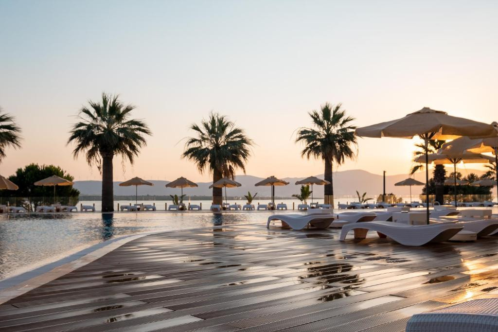 Были впервые в данном отеле и впервые на Эгейском море. Отель нам очень понравился, море прекрасное. Прям перед отелем каменистый вход (даже острые большие камни), если отойти немного правее, ближе к общественному пляжу, то заход равномерный и песчаный. Климат тоже супер, нет такой влажности, как в Анталии. Еда вкусная, хоть и без изыска, но не критично. В лобби-баре есть алкоголь импортного производства. Отель семейный, детей очень много. Есть также Старбакс. Мы брали корпус с видом на море. Недалеко от отеля есть небольшой Мигрос, все необходимое можно купить там. До центра Дидима на такси минут 20. Там есть шикарный пляж Алтынкум с множеством кафе и ресторанов на любой вкус. Персонал в отеле доброжелательный, есть русскоговорящие. Еще раз бы вернулись с большим удовольствием.