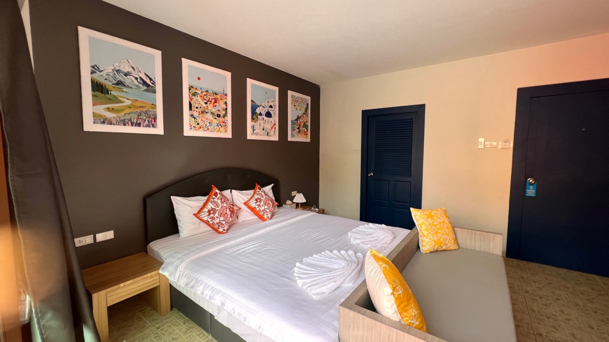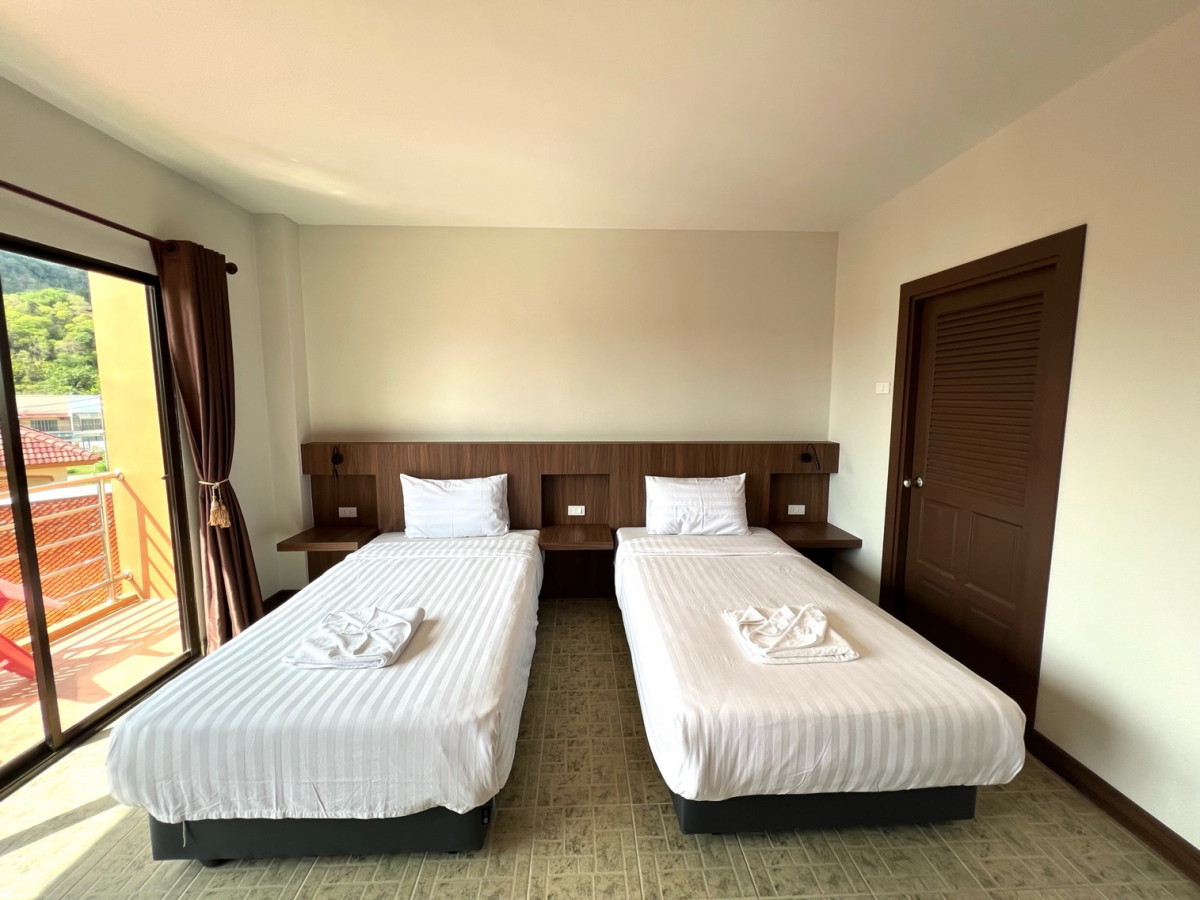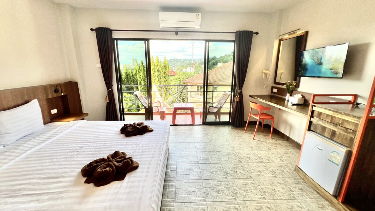 Уезжали из отеля с грустью, потому что за 14 дней чувствовали в нем себя уже как дома. Убирают, кондиционер работает, ТВ на русском работает, вода горячая всегда есть, персонал оооочень доброжелательный. В наш заезд (сентябрь 2018) все гости были из России, поэтому по вечерам мы собирались у бассейна как большая дружная семья. При этом жалоб из номеров не было (значит мы им не мешали). Номера в основном не большие, но для нас это не минус, потому как мы там только спали и иногда ужинали едой "с собой". У нас номер был на первом этаже со стороны дороги, шум конечно невообразимый, так как стена - это большие раздвижные французские окна, шумоизоляции напрочь никакой, впечатление, что спишь прямо на дороге. Но мы слышали дорогу только первые три дня, потом привыкли, потом нашли в магазине тайский ром, и после активного дня абсолютно сладко спали. Так что это дело привычки. В первое утро попросили номер поменять. Администратор пообещала это сделать в ближайшие 2 дня, как освободятся номера, и не обманула, через два дня предложила нам переехать, но нам уже наш номер нравился на тот момент, и мы остались. До пляжа действительно идти далеко, но мы этому были только рады, потому что по дороге можно обследовать местность на предмет более выгодного шопинга, вкусняшек, экскурсий и т.п. К тому же мы старались разнообразить пляжный отдых, поэтому ходили то на Карон, то на Ката Ной (по км примерно одинаково). Завтраки на крыше с красивым видом на джунгли и свежим утренним ветерком хорошо бодрили и заряжали, еда на завтраки стандартная для завтрака: яичница, салат, сосиски, тосты, джем, арбуз, местный суп (правда очень жиденький), лапша. Вечером у отеля пустынно и глухо, но до улицы с барами и ресторанами всего 15 мин прогулочным шагом. Ви-Фи в отеле стабильный. В общем отель вполне соответствует тайскому "сабай-сабай".