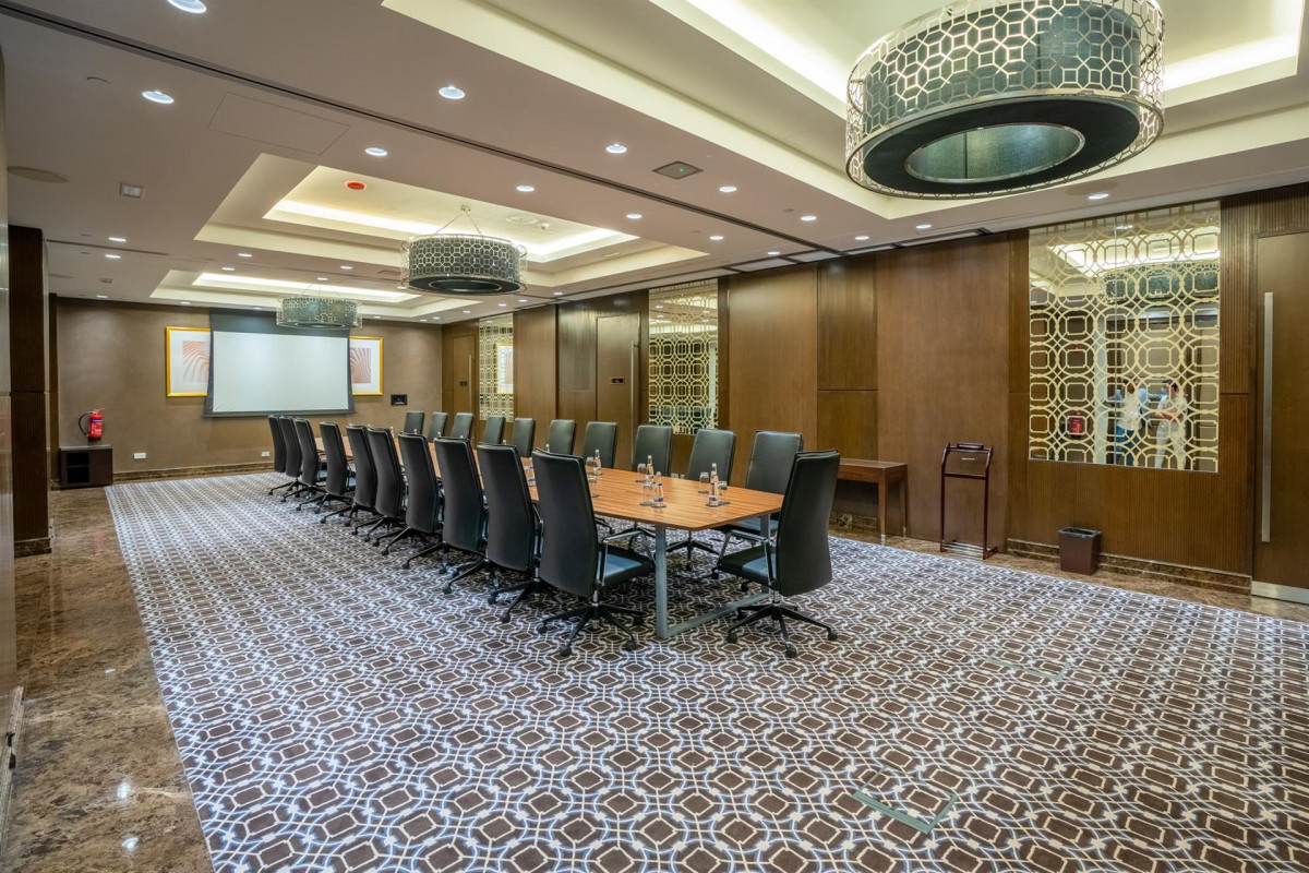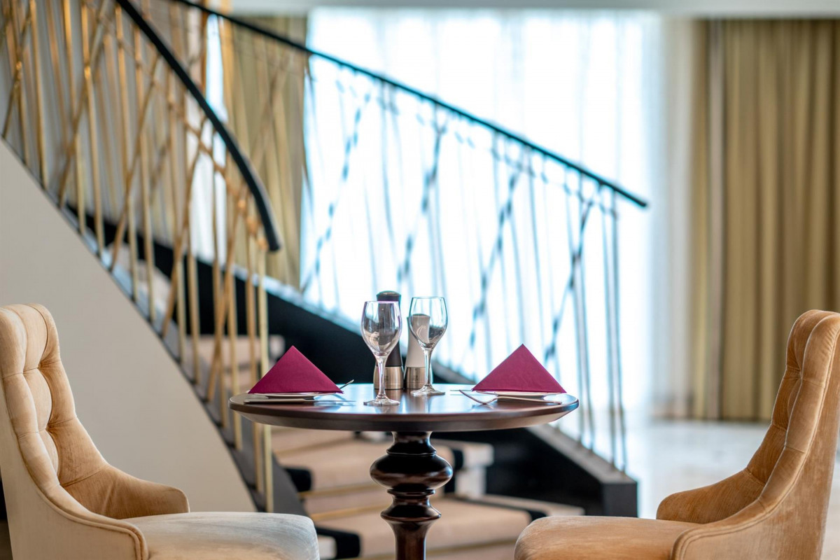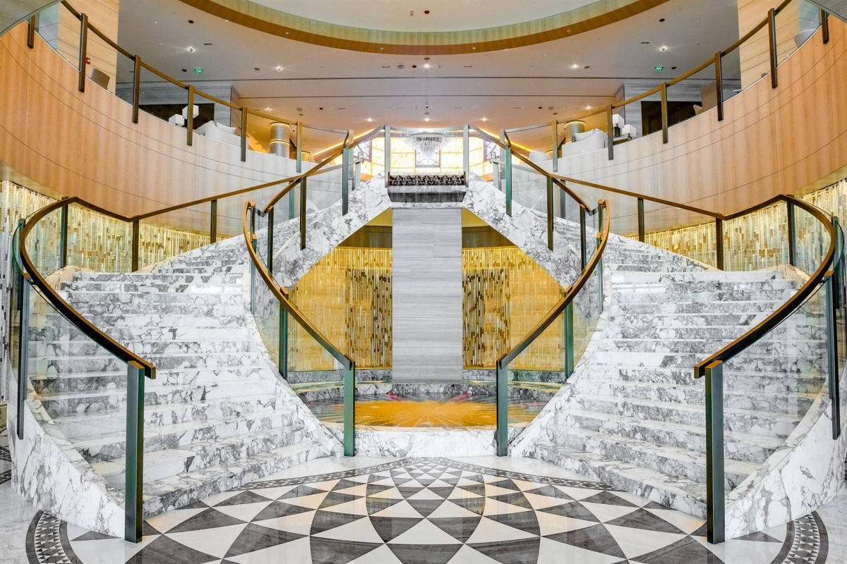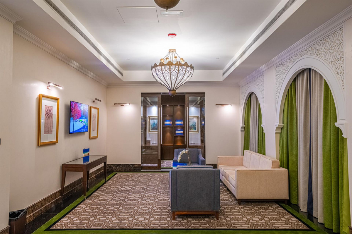 Состоит из одного здания. 6 лифтов. К услугам гостей 563 роскошных номера класса люкс с видом на Персидский залив или оживленный городской пейзаж столицы. Все номера стилизованы под арабский декор в теплых тонах и отделаны роскошными акцентами и мебелью, что создает домашнюю и уютную атмосферу. 85% номеров с видом на море и набережную.