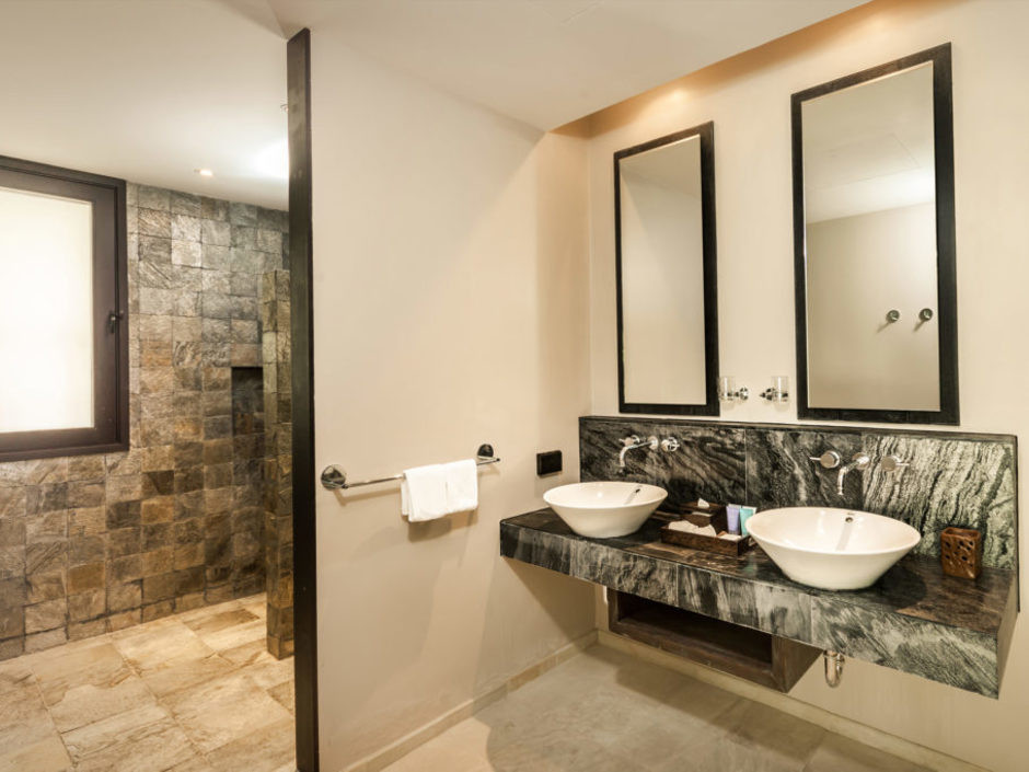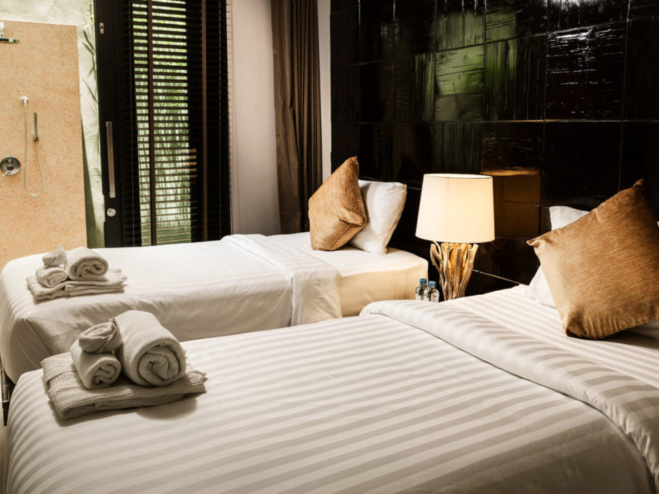 Отель состоит из 2-этажных корпусов и 1-этажных вилл.