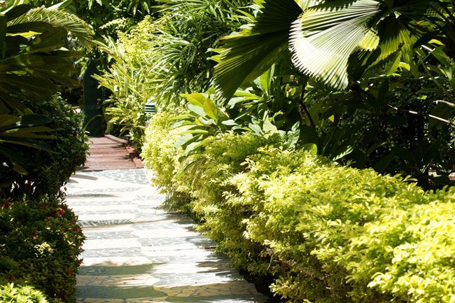 В 28 км от аэропорта, в 700 м от пляжа Салад, в прекрасной песчаной бухте, в окружении красивых тропических садов.