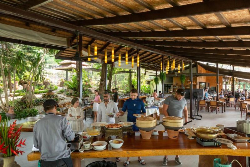 не советую никому. люди не надо. это просто очко а не место. отель разделён на два района: 1-со стороны ресторана, в принципе пойдёт . 2-через дорогу и тут начинается п*** / хрен ты перейдёшь дорогу / на территории свалка / персоналу наплевать на то что ты живёшь с насекомыми в одной кровати / какая то мерзкая плесень почти на всех домах на стенах-------и это только то что я заметел за один день. --трансфер не ходит никуда, в помощь только тук туки и такси(лучше такси). часть домиков находилась на реставрации но отель об этом не говорил. то что бронировали было на реставрации заселили в какую-то хрень. --- что касаемо еды тоже чушь, погоняв по нескольким отелям за один месяц понял что это самое худшее что было. позиций в завтраке всего 2. овощи и и какоето убожество из сои.