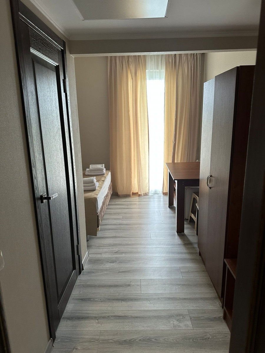 Сегодня вернулась с отдыха, находилась в отеле с 14 по 22 июня. Сразу хочу отметить ужасный трансфер , ездила от Библиотеки глобуса. Два часа в аэропорту( ждали два рейса из Москвы), дальше какое то сума шествие на границе , короче путь от прилета и до Очамчира заняло 9 часов. Покупала ранний вылет даже к ужину не приехали. Отдых не плохой , свежие номера ( чайник один в коридоре), банное полотенце оно же для пляжа. Постель меняют раз в неделю. Еда по принципу голодным не будешь, но обычная столовая еда , продукты дешевые. В основном полуфабрикаты. Экскурсии хорошие, природа красивая, но все не ухоженно. Много бродячих животных( на пляже в отеле) и это очень омрачает впечатление, из неоспоримых плюсов термальный бассейн!!!А огромный минус - это 2 лифта, не менее часа тратишь на под’ёмы и спуски На такое количество отдыхающих их должно быть минимум четыре.Подытожу если учесть, что на самолет обратно везут за 10 часов до рейса на перекладных впечатления об отдыхе уже сегодня нет.