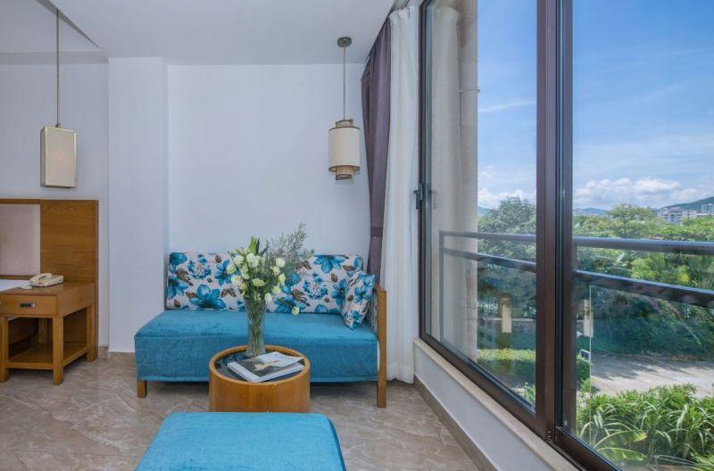Отель для семейного тихого отдыха. Но оочень скучно. Рядом с отелем нет ничего. Чтобы сходить в кафе пообедать или на ужин придется тащится в соседний квартал минут 10-15. Если едете с детьми, это проблематично. Завтраки в отеле не изысканные, но всегда было что поесть и накормить детей. Добраться в бухту Дадунхай можно на автобусе, вот там есть где погулять, что посмотреть, А вечерами там очень красиво. Автобусы ходят всего до 8 часов вечера и приходится добираться обратно на такси. Но плюсы: море чистое по сравнению с бухтой Дадунхай, собственные лежаки на пляже, тоже плюс. Всегда ходят и предлагают фрукты на пляже. До пляжа только дорогу перейти. Нет такого количества народа как в Дадунхай. Ездили с детьми, нам было скучновато.
