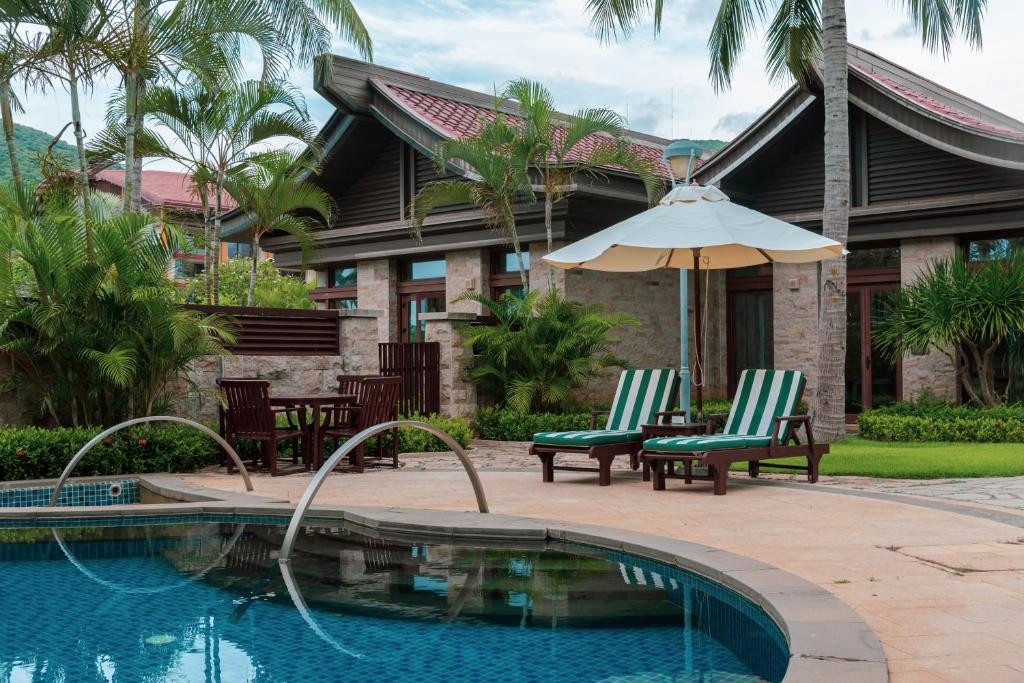 Курортный отель расположен на острове Хайнань, примерно в 10 минутах езды от лесопарка «Тропический рай» в бухте Ялунвань. Стильные номера отличаются современным интерьером. Все номера оснащены всем необходимым для комфортного отдыха гостей. Можно заказать сеанс массажа или поиграть в теннис. В собственном кинотеатре отеля есть возможность посмотреть фильмы. В ресторанах отеля представлен отличный выбор блюд из свежих морепродуктов и блюд китайской кухни. В баре гостей ждут освежающие напитки.