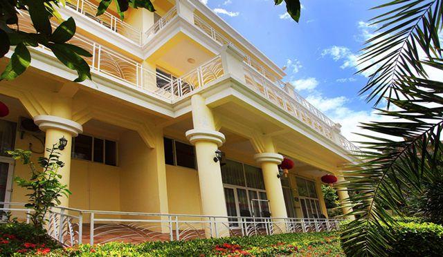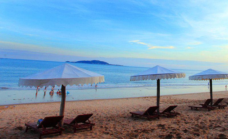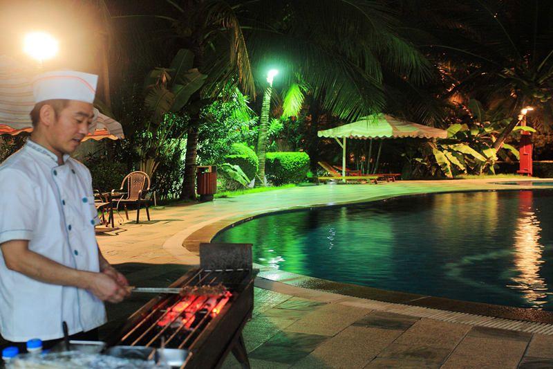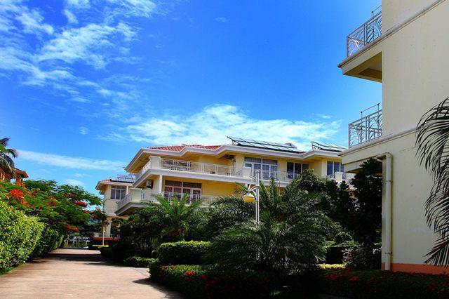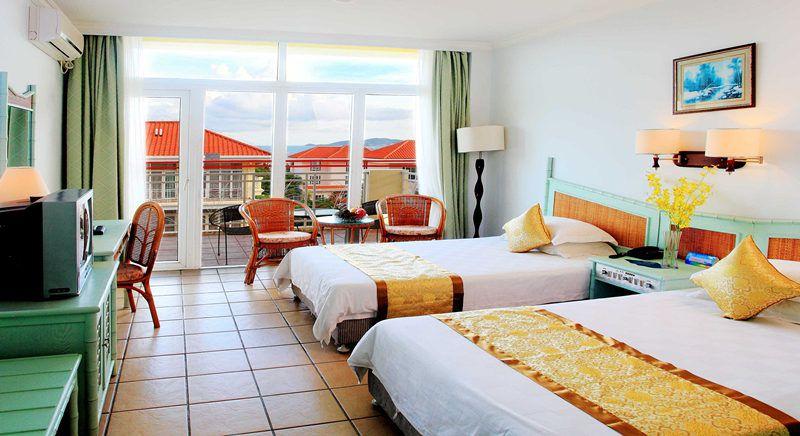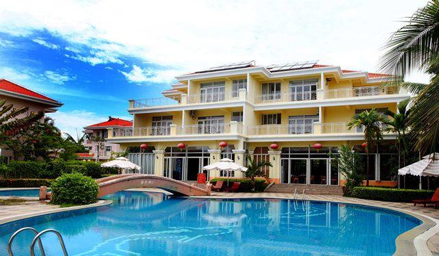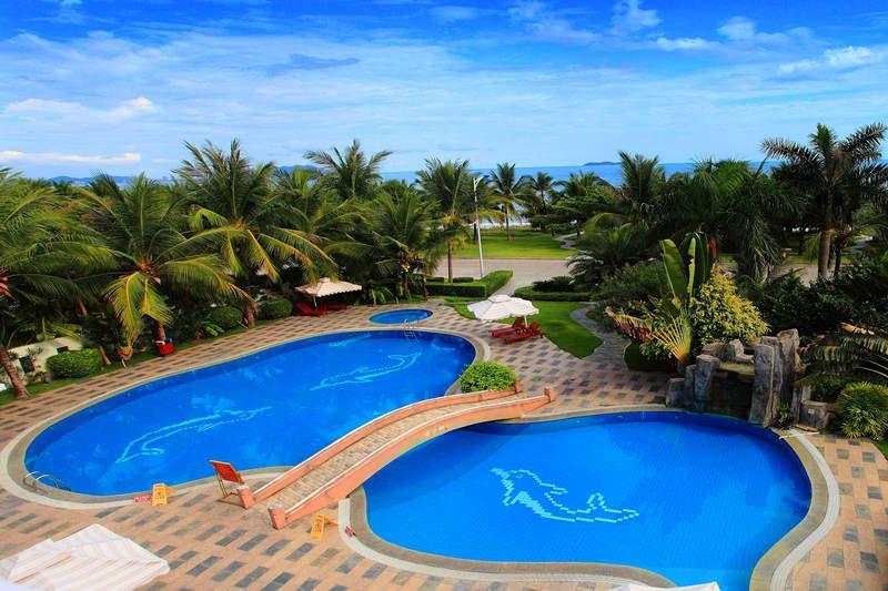 в бухте Санья-Бей, в 9 км от аэропорта, в 13 км от центра города, через дорогу от пляжа.