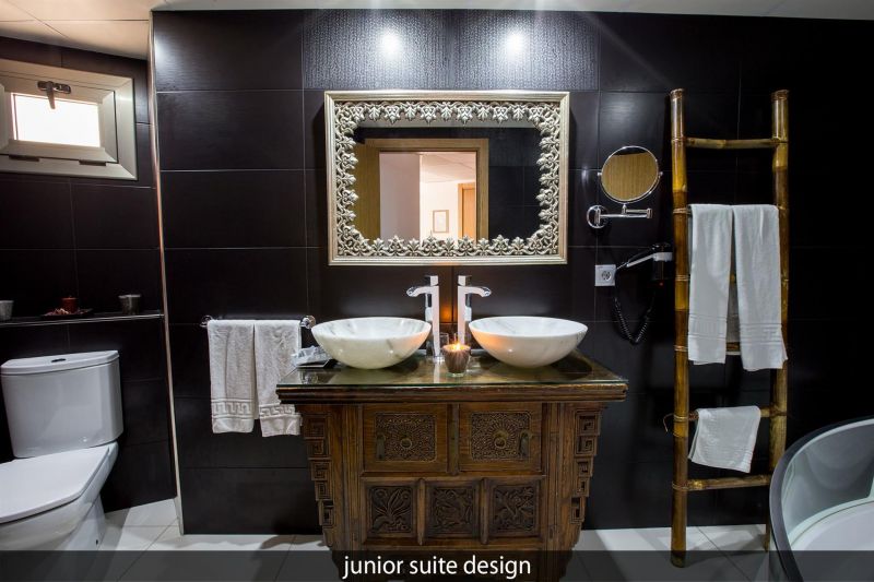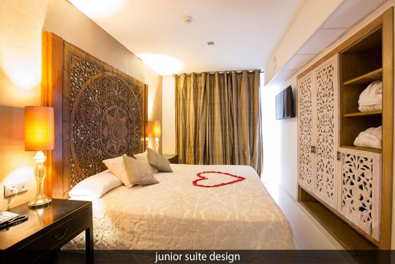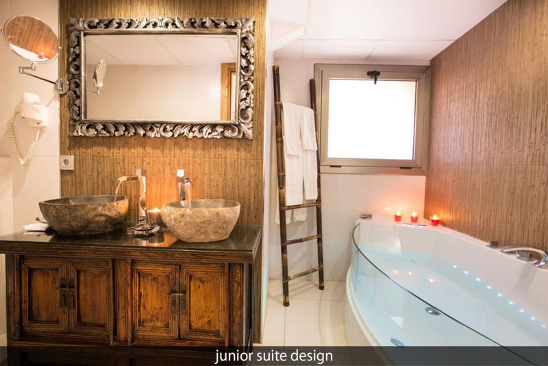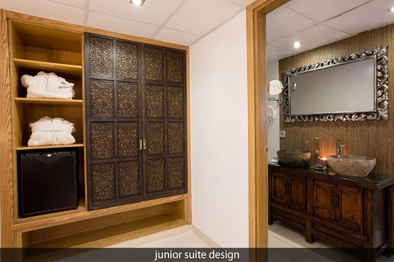 Номера Junior Suite design расположены в здании отеля (у отеля 1 корпус, построенный в форме буквы "Г"), в той же части, где вход в отель и ресепшен, на 2 этаже. Имеют вид на сад.